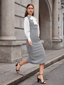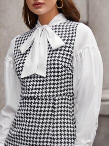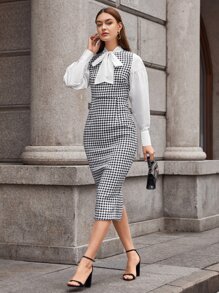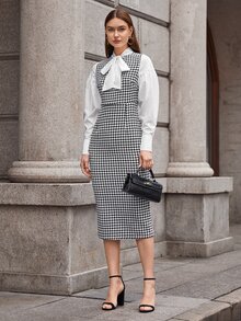 فستان 2 في 1 مربعات باكمام بيشوب وبربطة عنق
