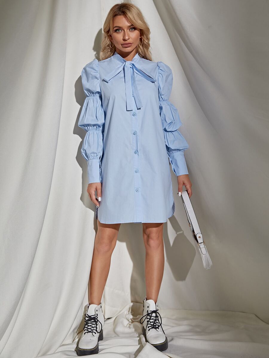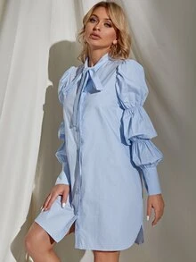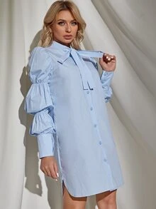 فستان قميص بأكمام لوحة شطرنج وبربطة عنق