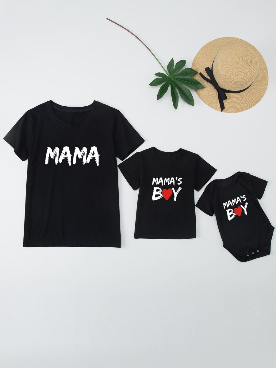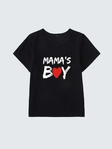 تي شيرت بطباعة قلب وعبارة قطعة واحدة للاولاد الصغار