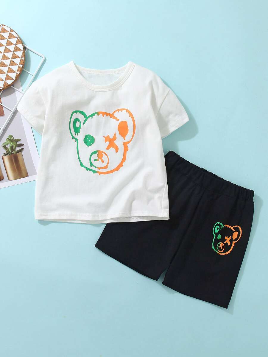 شورت مع تي شيرت بجرافيك رسوم كارتون للاولاد الصغار