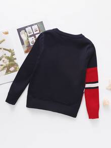 سترة صوفية بياقة دائري وبلوحة متباين للاولاد الصغار