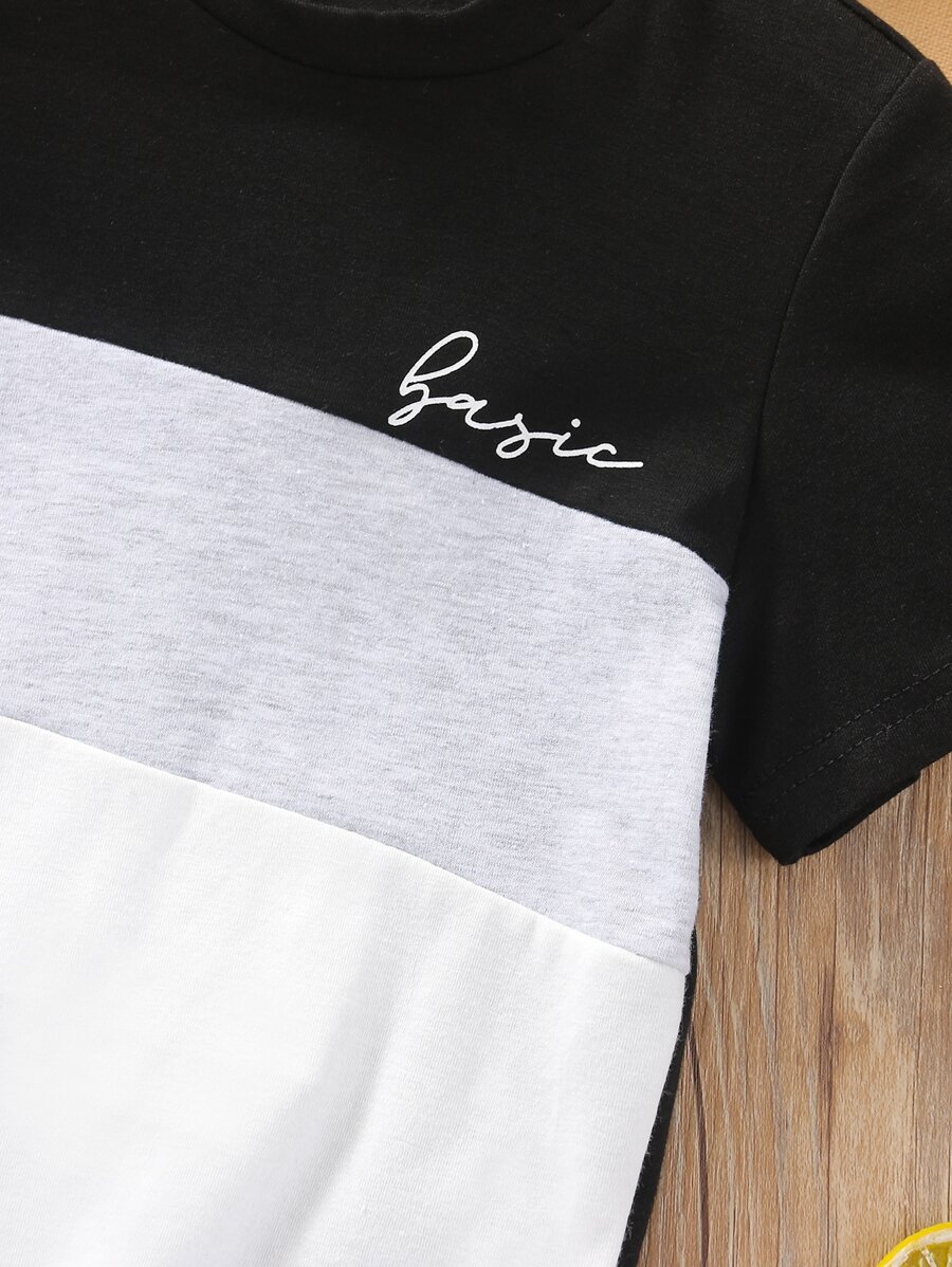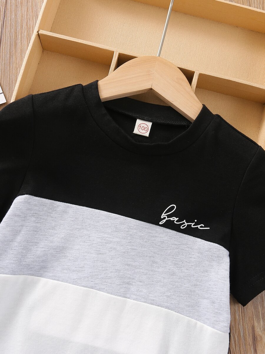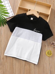 تي شيرت بقص وخياطة بطباعة أحرف ولد طفل