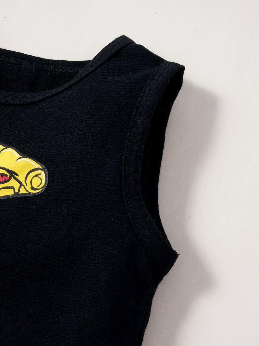 للولد الصغار طباعة ديناصور لباس علوي تانك مع بطباعة مربعات غنغهام بنطلون قصير