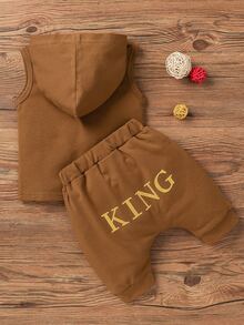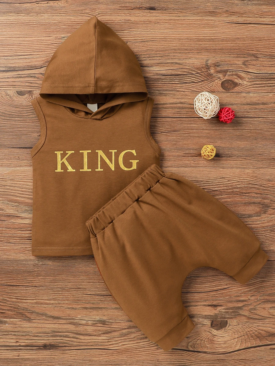شورت مع لباس علوي تانك مقنع بجرافيك عبارة للاولاد الصغار