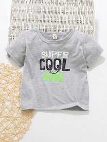 تي شيرت بأكمام قصير وبجرافيك عبارة للاولاد الصغار