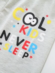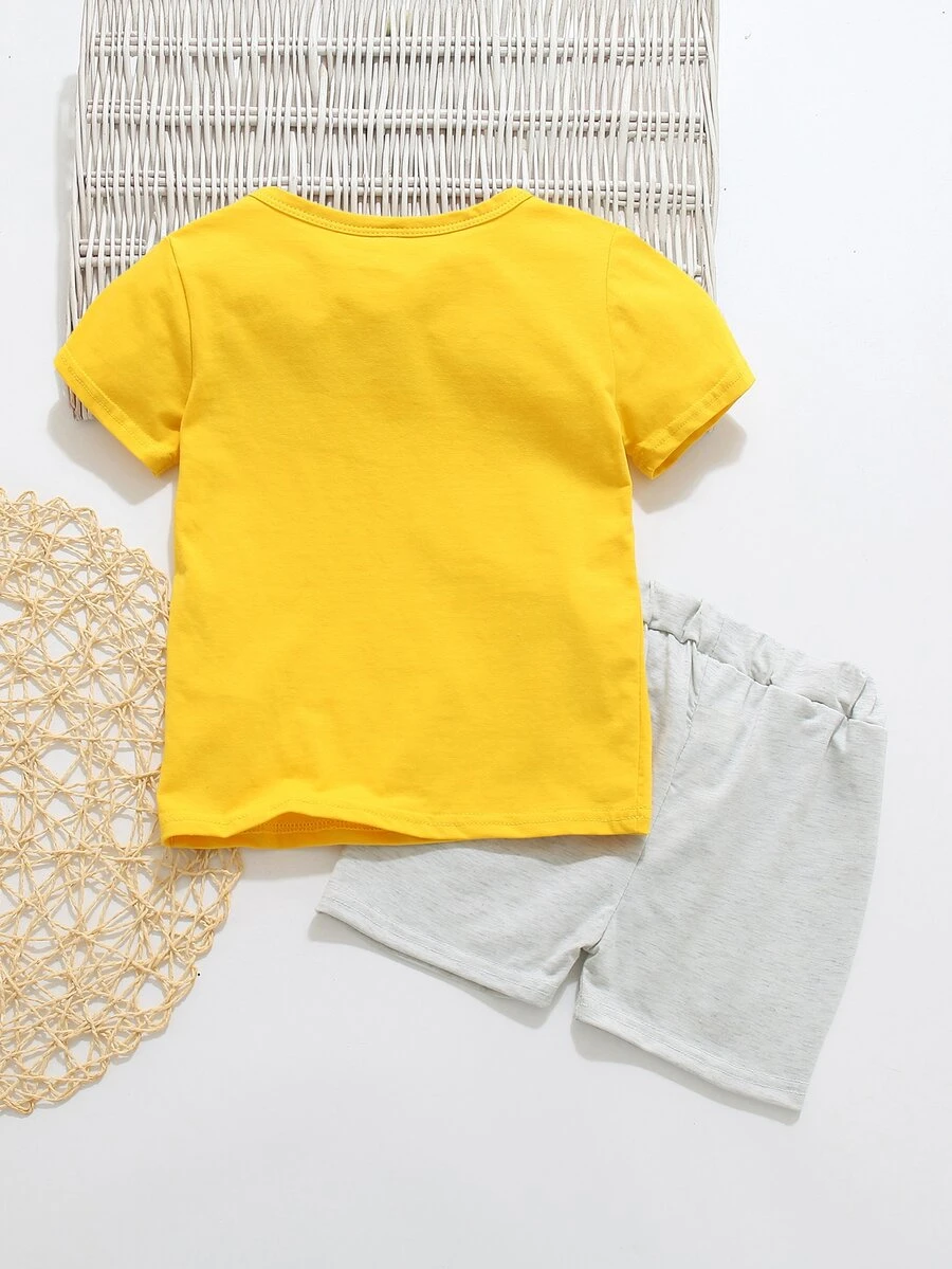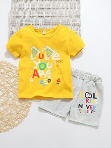 سروال قصير مع تي شيرت بجرافيك عبارة للاولاد الصغار