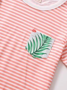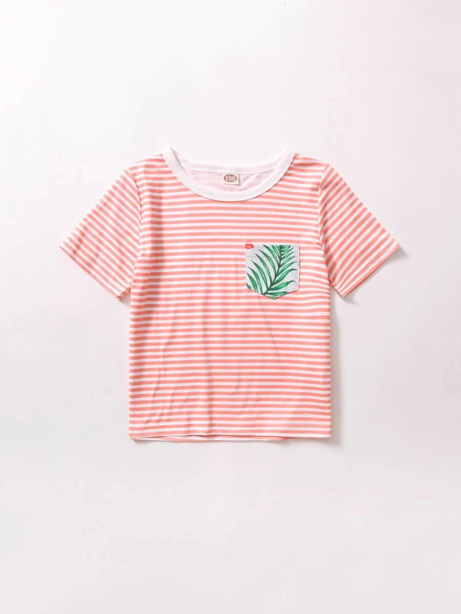 تي شيرت مخطط بجيب استوائي للأولاد الصغار