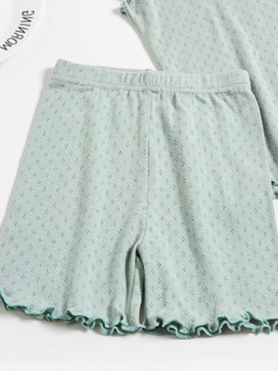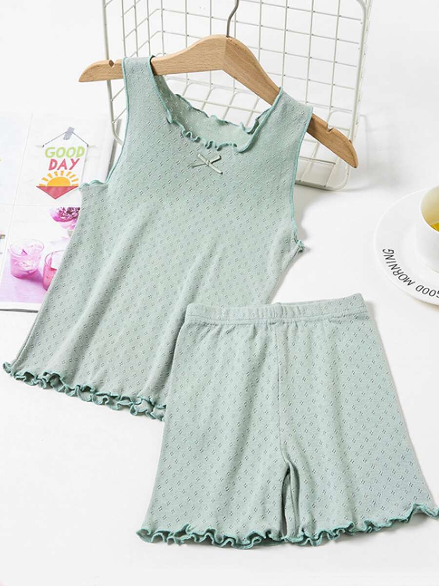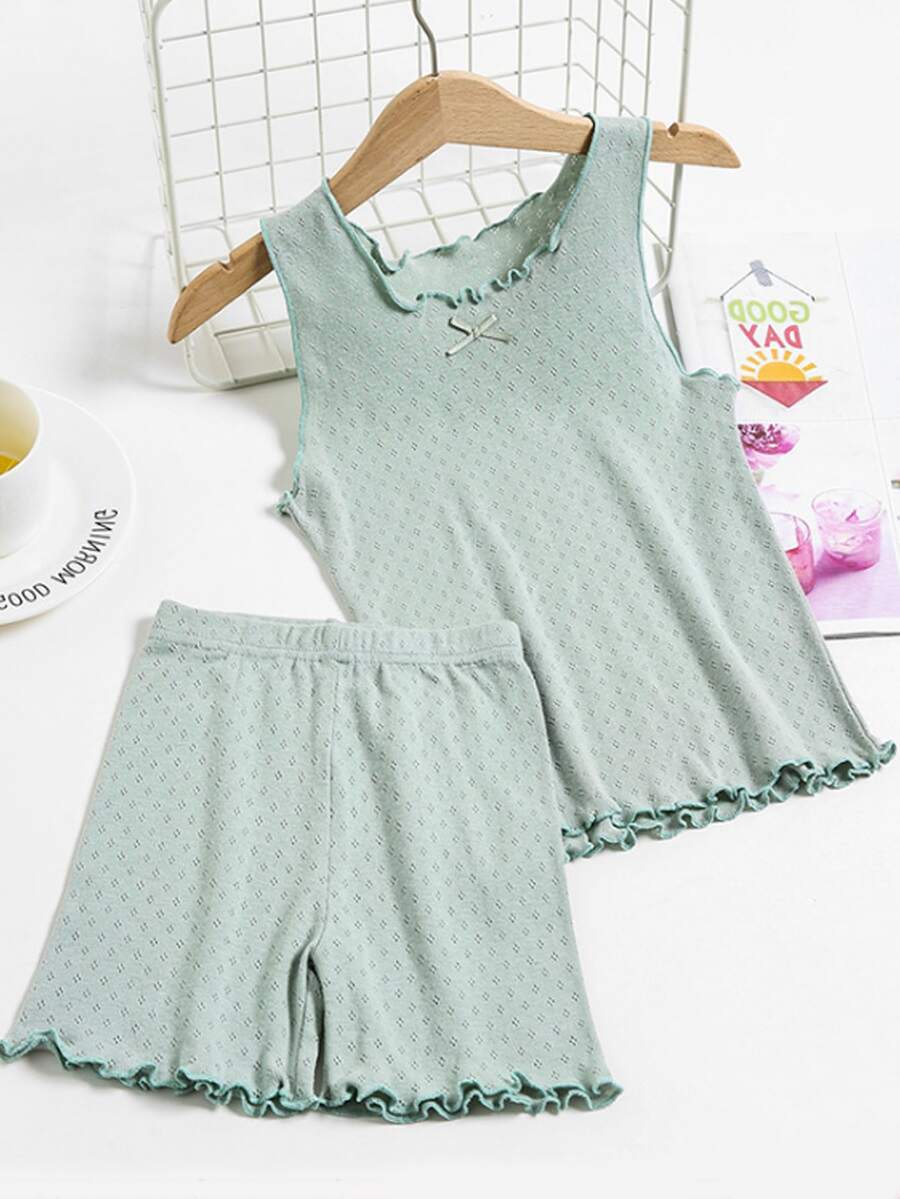 طقم بيجامة مقلم خس بطباعة شامل للبنات الصغار