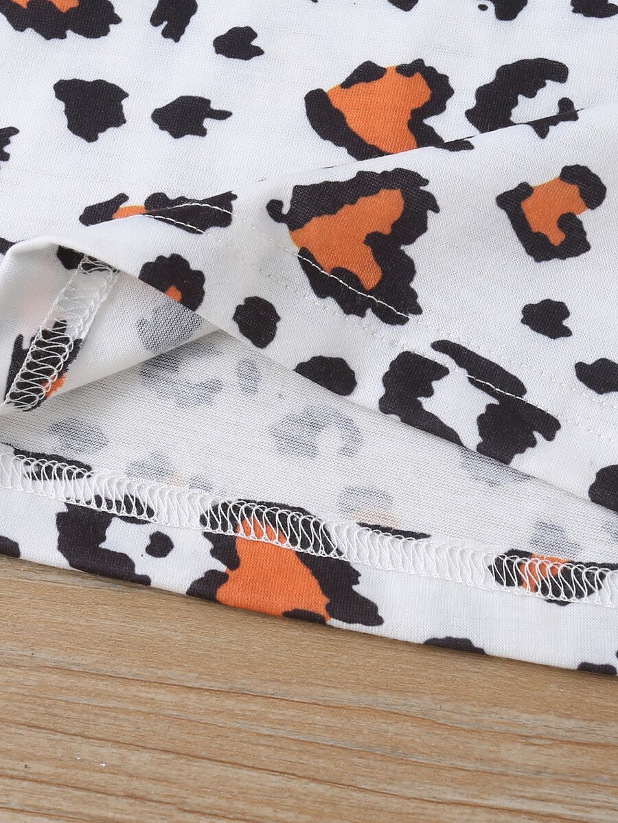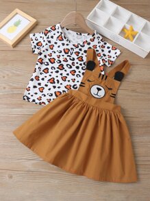 تيشيرت بطباعة متكررة مع فستان أفرول مطرز طفلة صغيرة