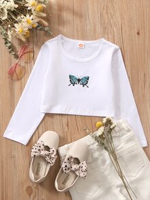 تي شيرت قصير بطباعة فراشة للبنات الصغار
