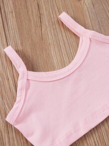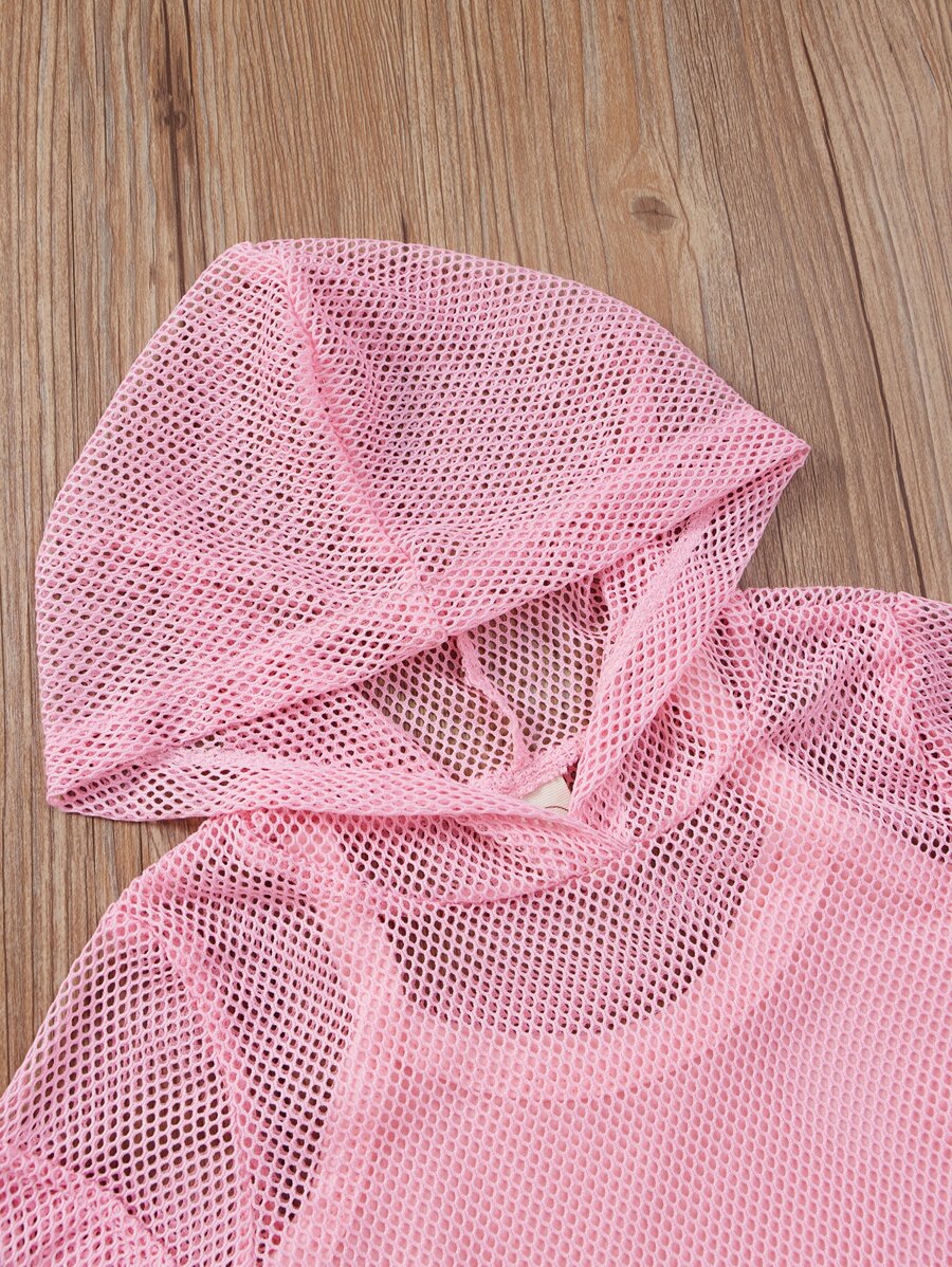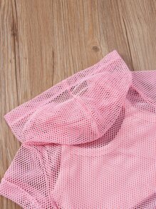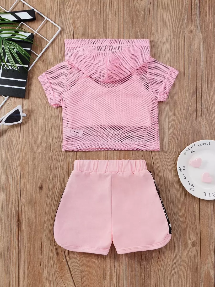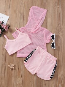 سروال قصير بجرافيك عبارة مع لباس علوي نمط شبكة صيد مقنع مع لباس علوي كامي للبنات الصغار