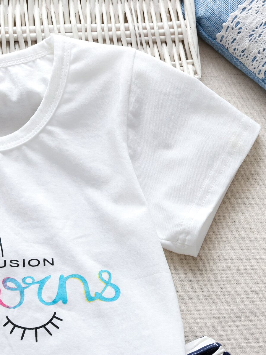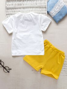 سروال قصير مع تي شيرت بجرافيك رسوم كارتون للبنات الصغار