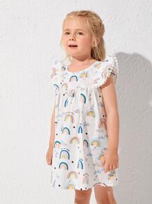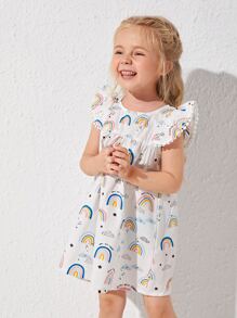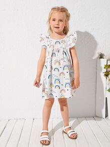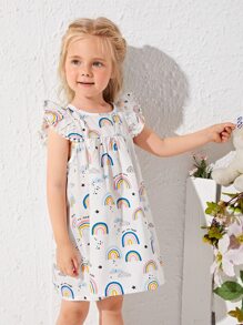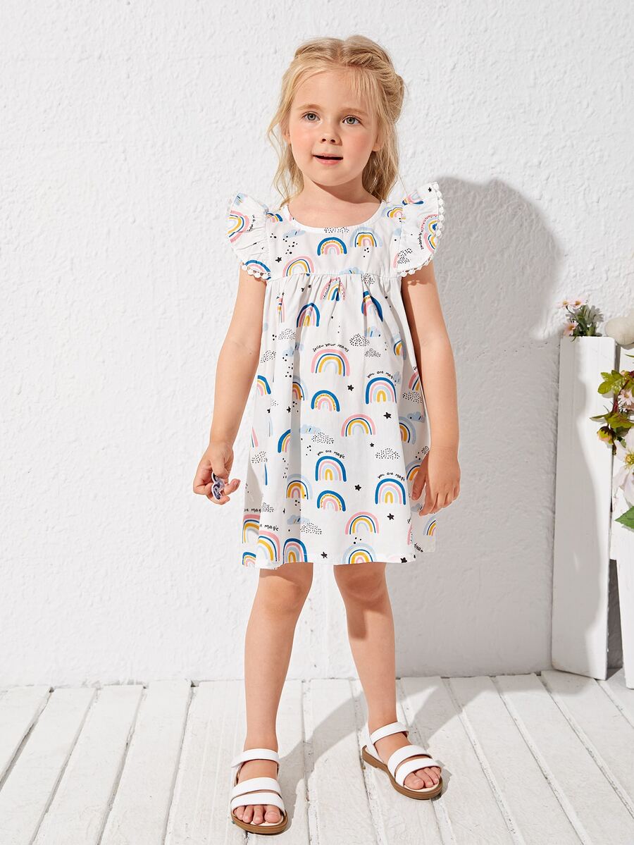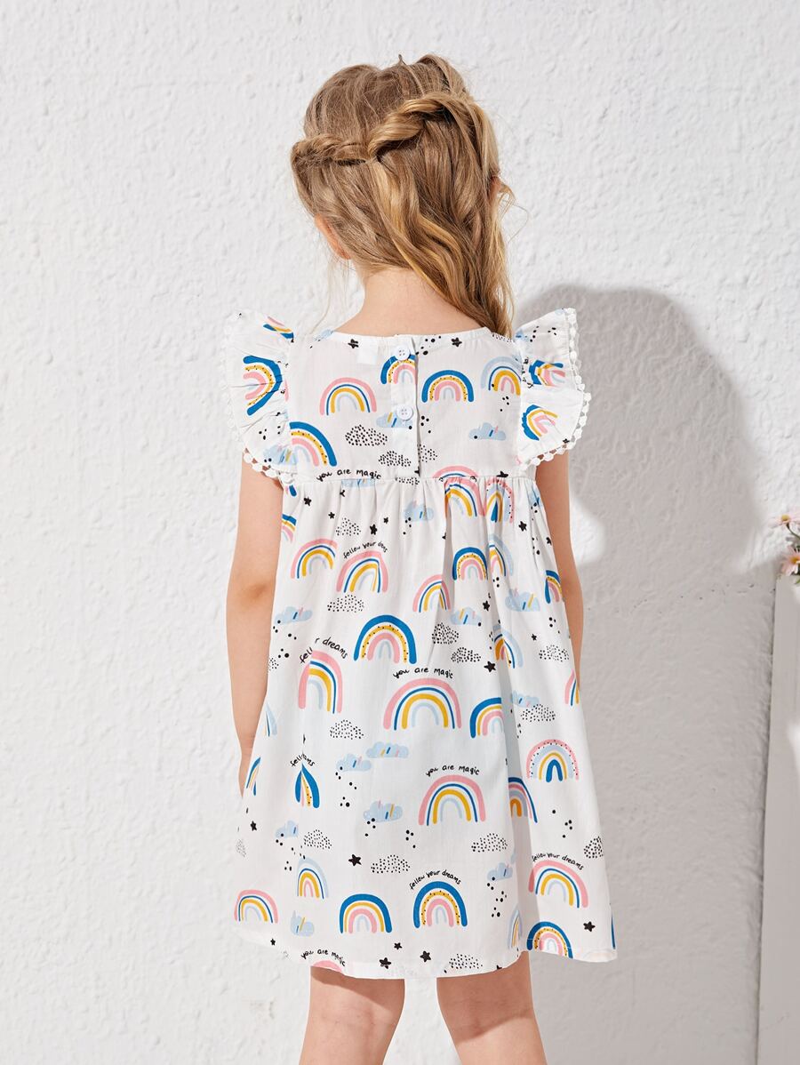 فستان بطباعة قوس قزح رسوم كارتون للبنات الصغار