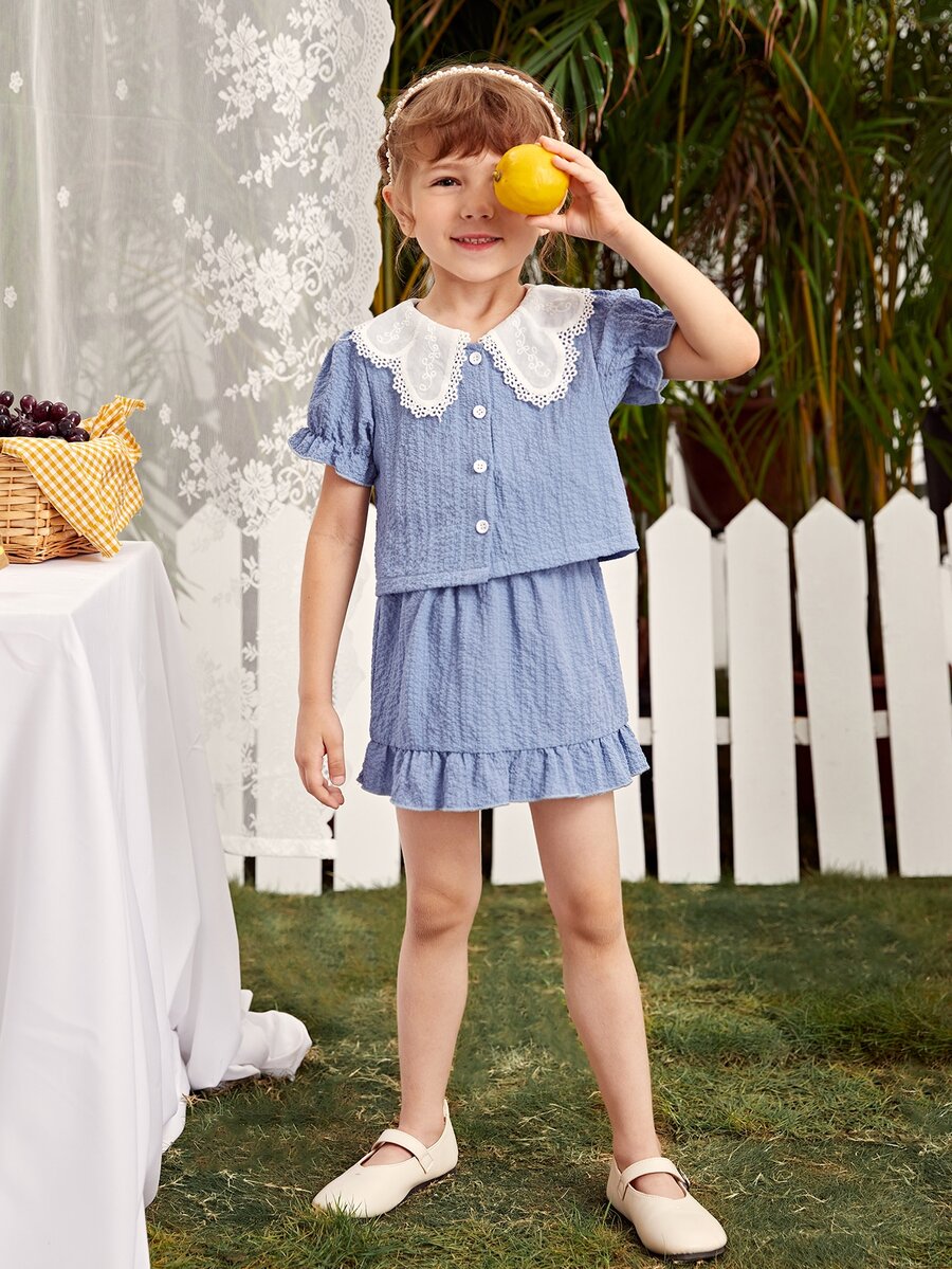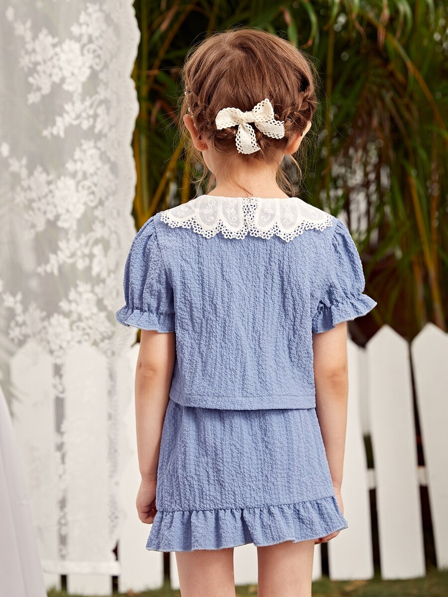 بلوزة وتنورة للفتيات الصغيرات ذات طوق بيتر بان متباين