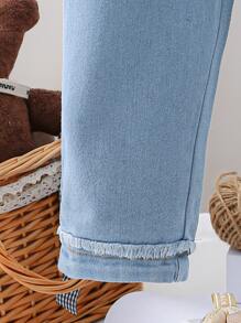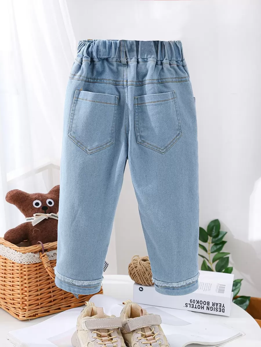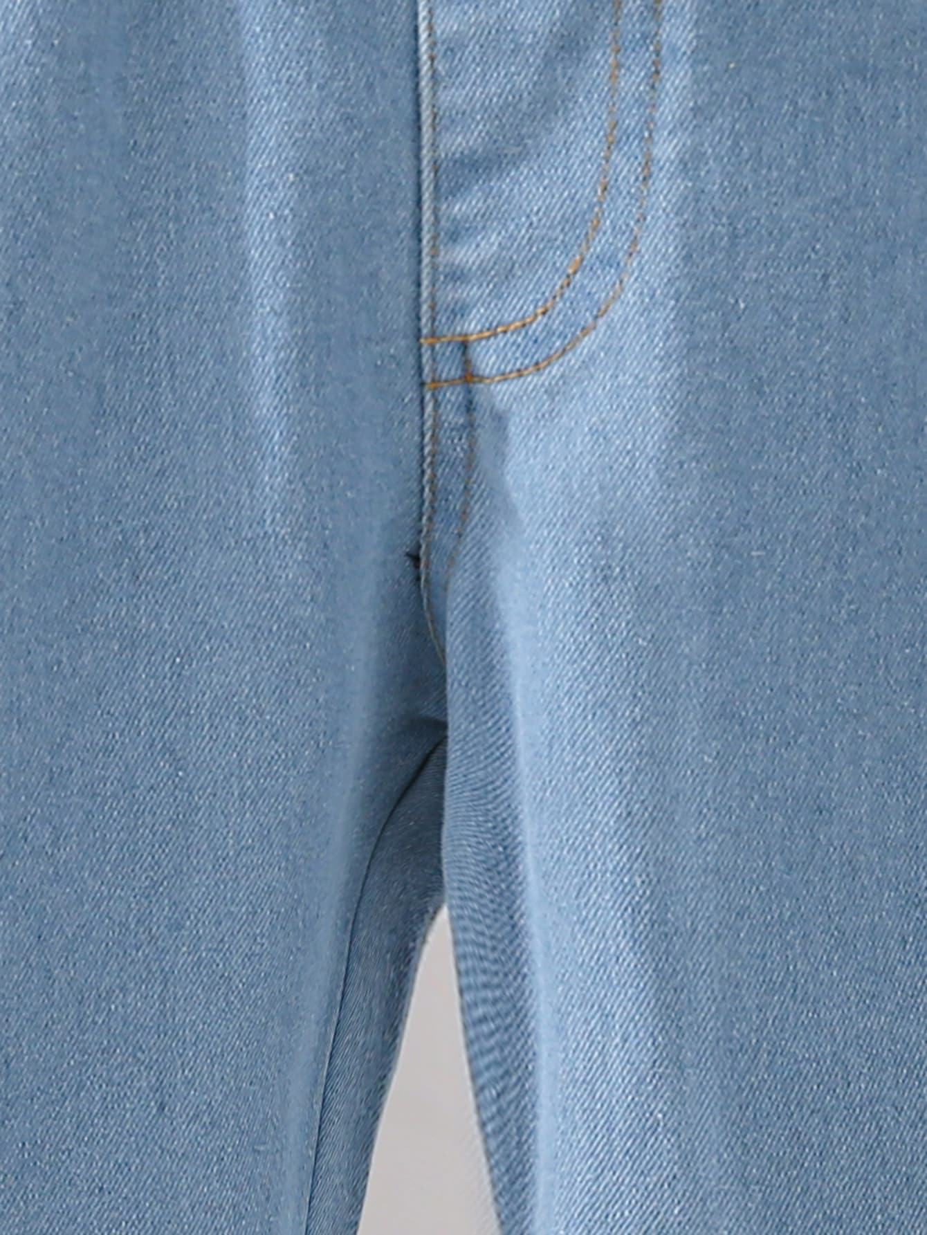 بنطلون جينز بقصة ضيقة وخصر مطاطي للفتيات الصغيرات مع جيوب خلفية
