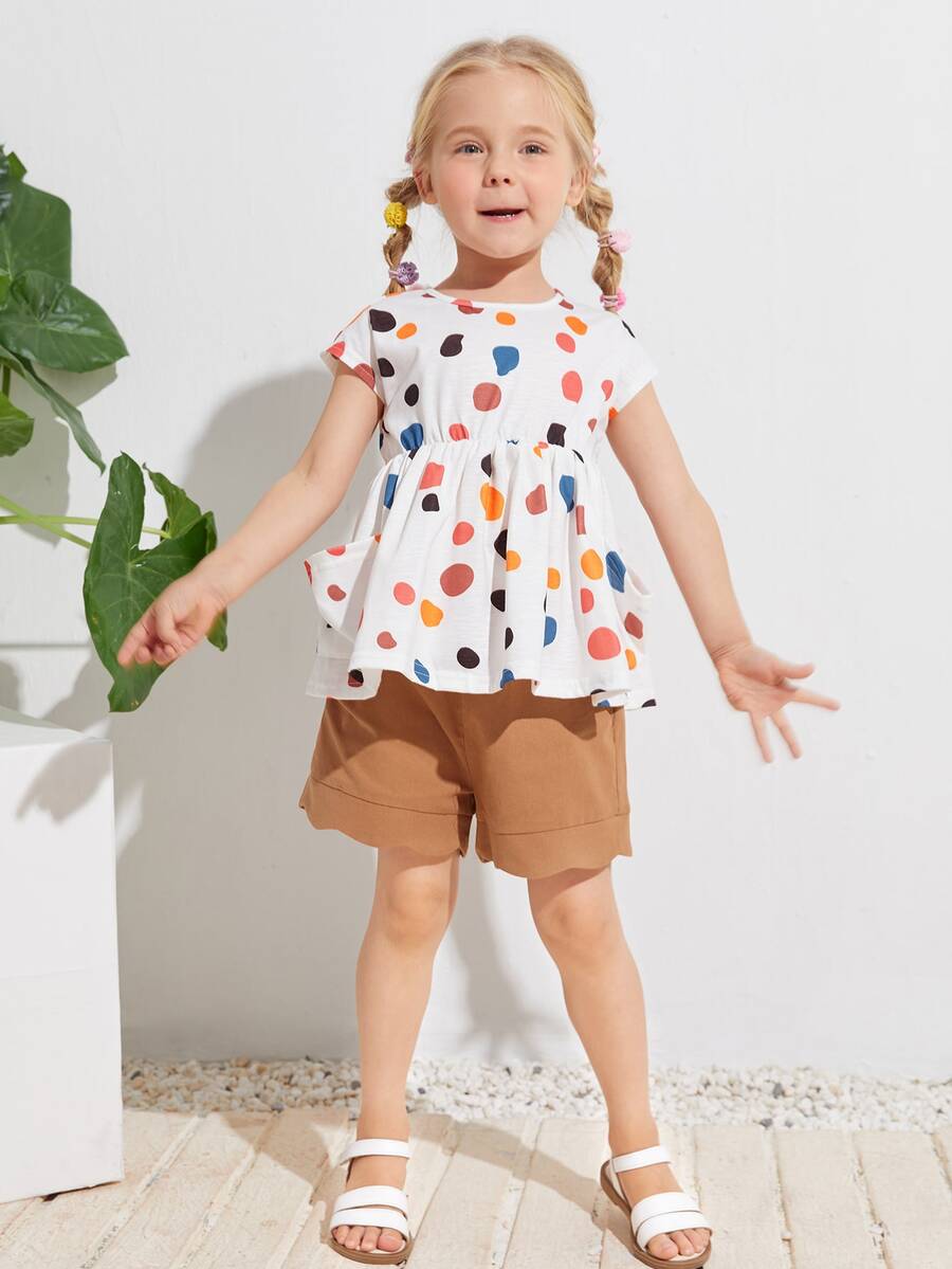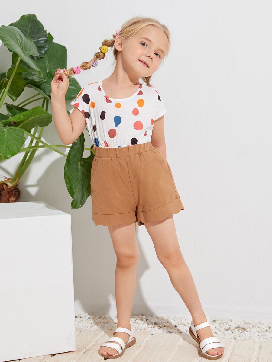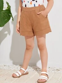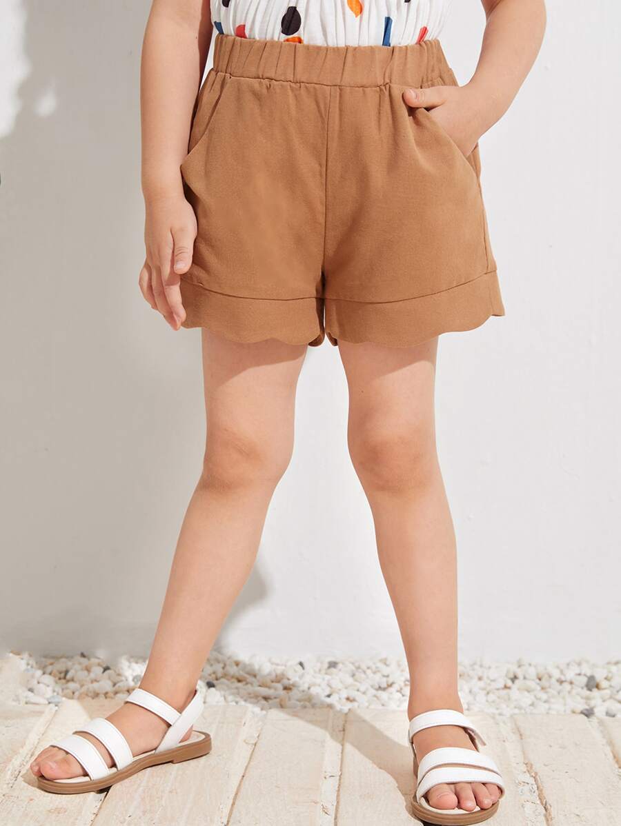 شورت مقلم صدفي بخصر مطاط للبنات الصغار