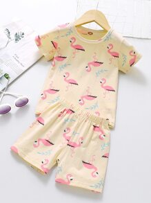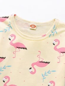 طقم بيجامة بطباعة فلامنجو للبنات الصغار