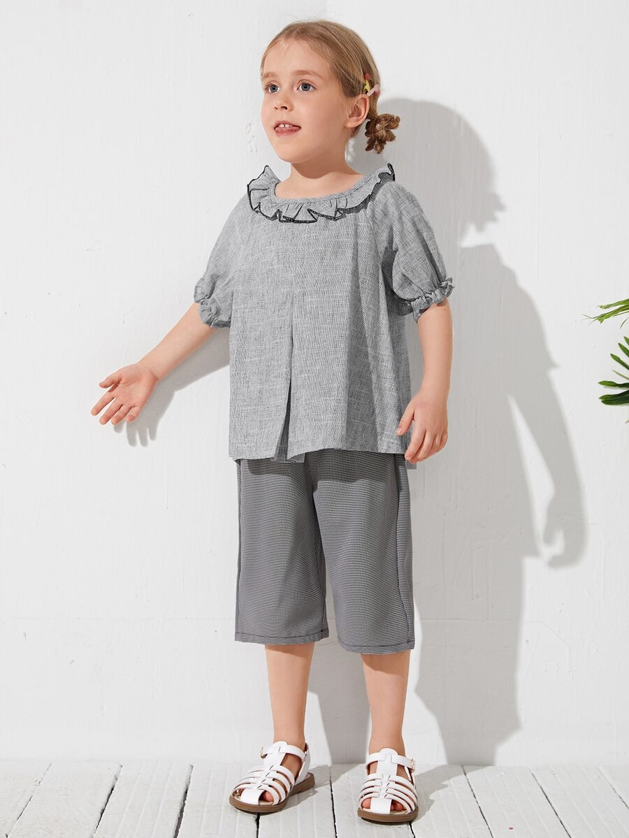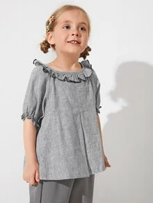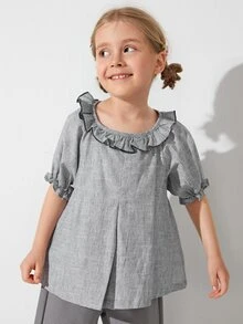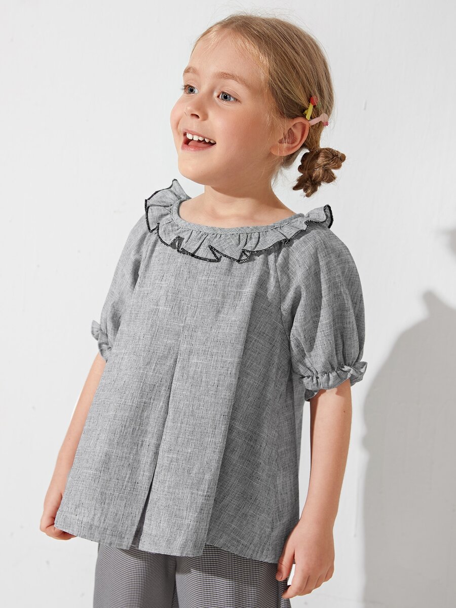 لباس علوي بتفاصيل مكشكش باكمام منتفضة للبنات الصغار
