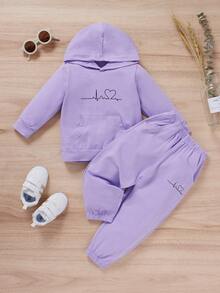 طقم قطعتين طفلة صغيرة الجيب تصميم الهندسة قلب كاجوال
