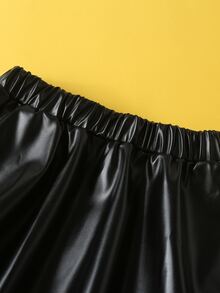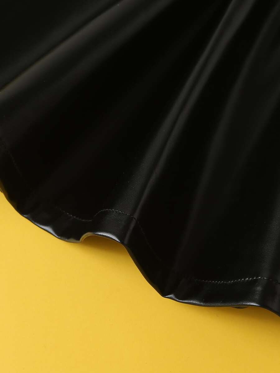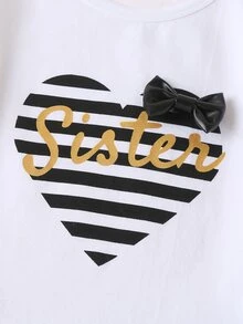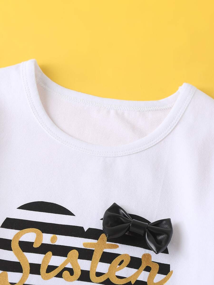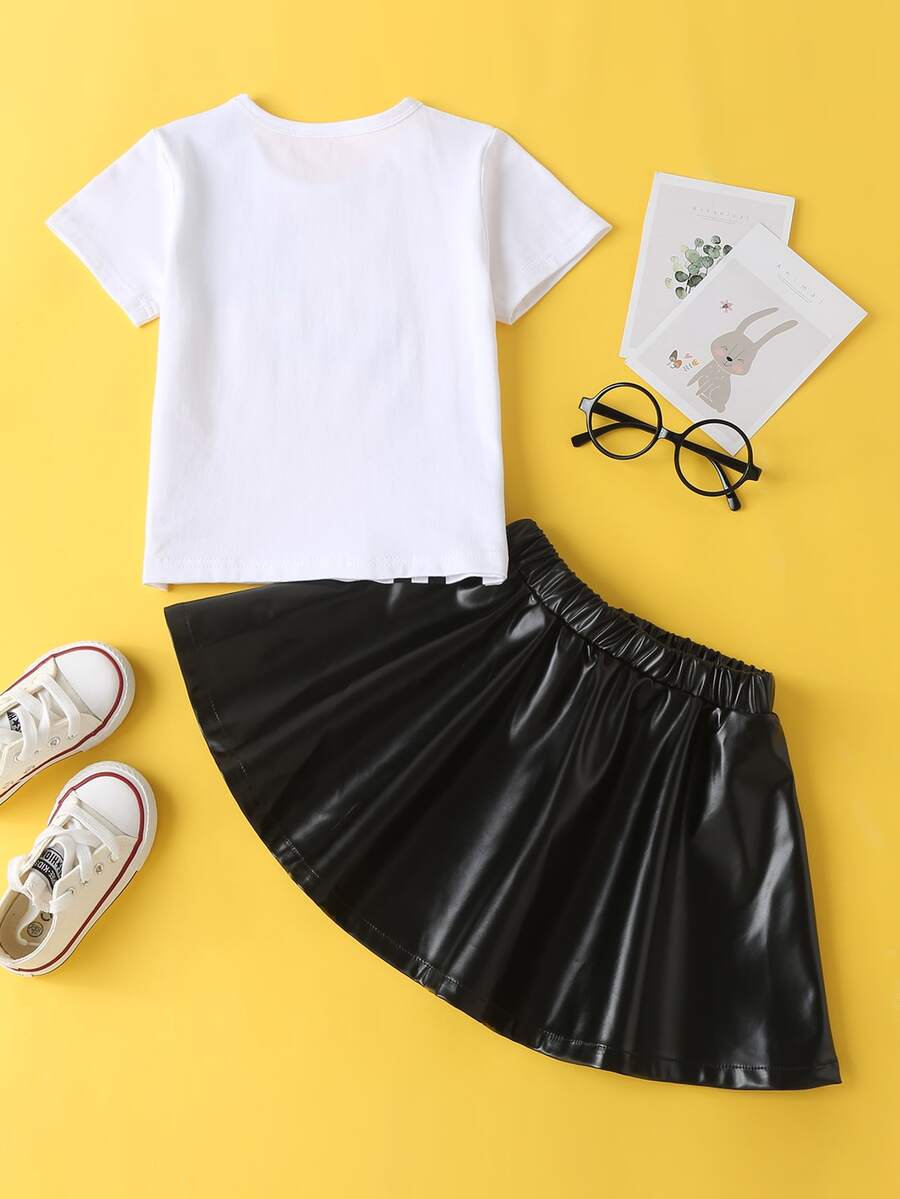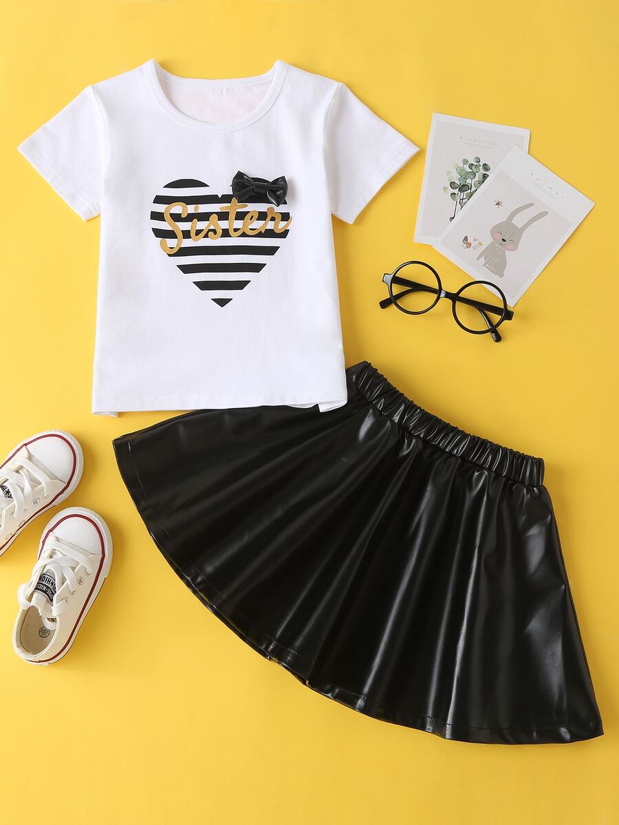 تي شيرت بطباعة قلب مع تنورة بجلد صناعي للبنات الصغار