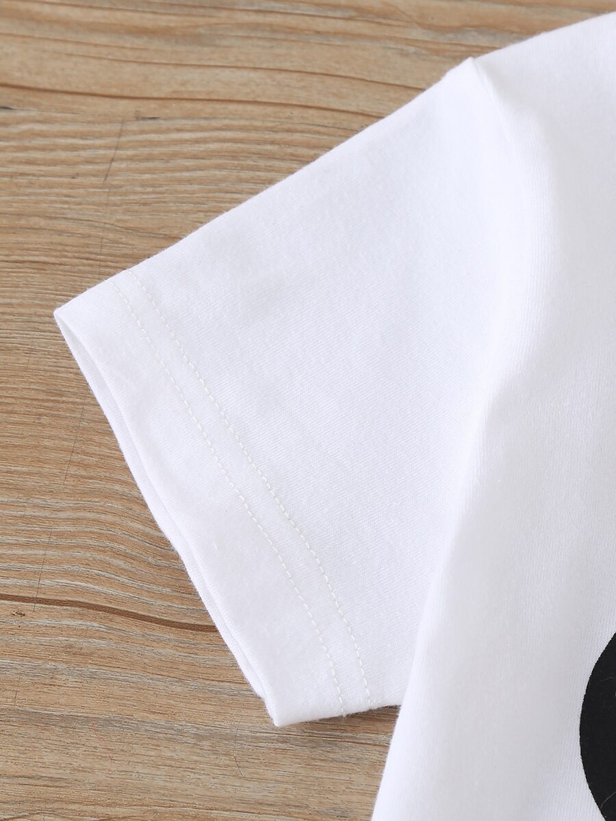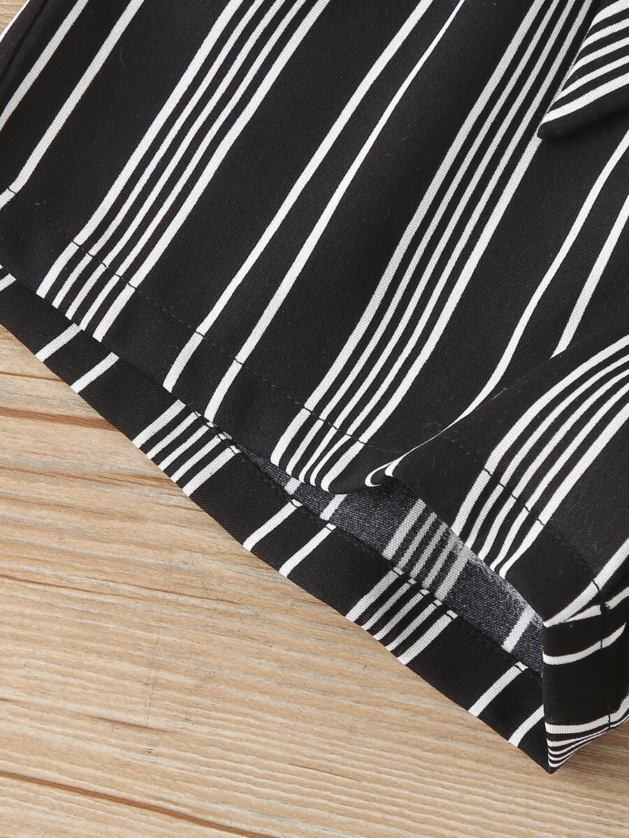 تي شيرت بطباعة قلب مع سروال قصير وبحزام مخطط للبنات الصغار