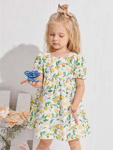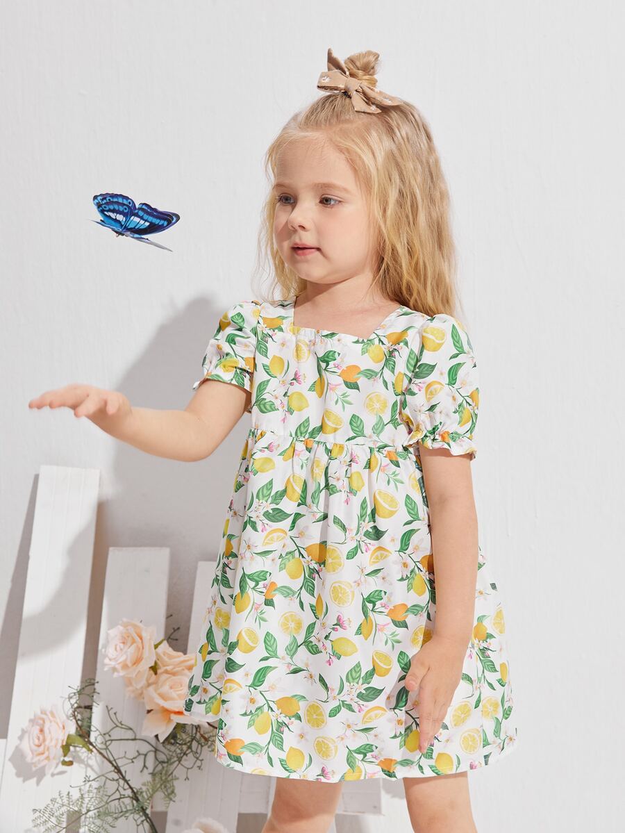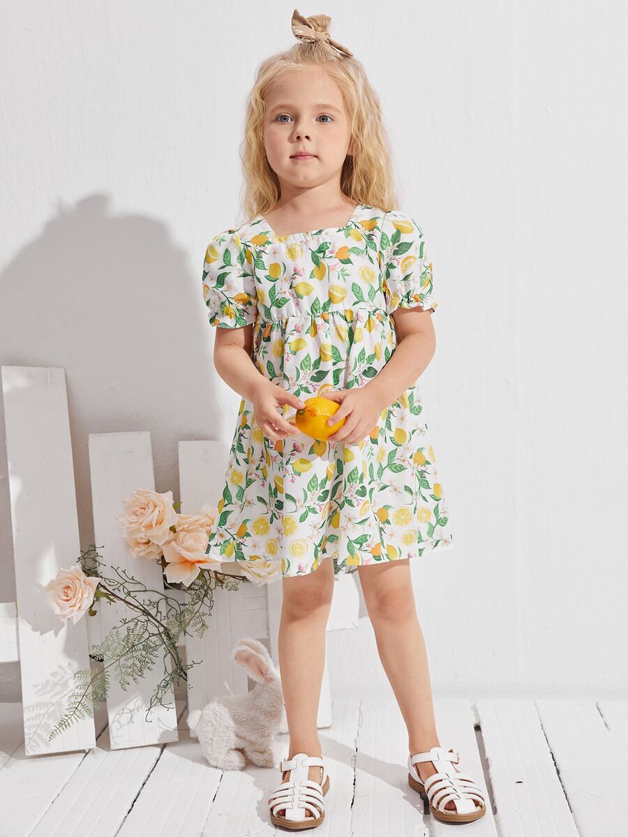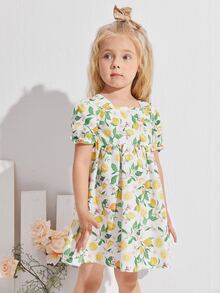 فستان سموك بطباعة ليمون للبنات الصغار