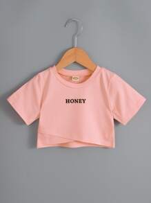تي شيرت قصير بجرافيك عبارة للبنات الصغار