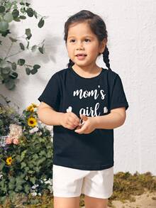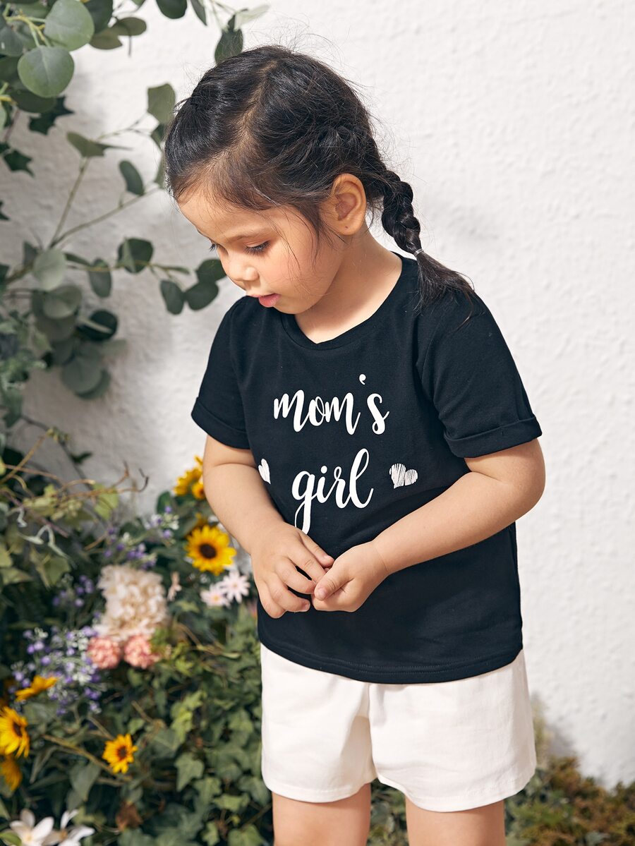 تي شيرت بطباعة قلب وعبارة للبنات الصغار