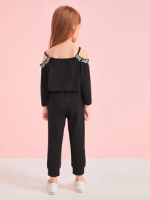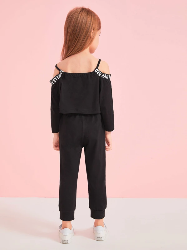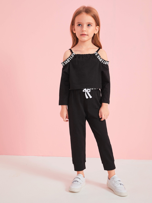سرال رياضي مع تي شيرت مفتوح الاكتاف وبشريط بعبارة للبنات الصغار