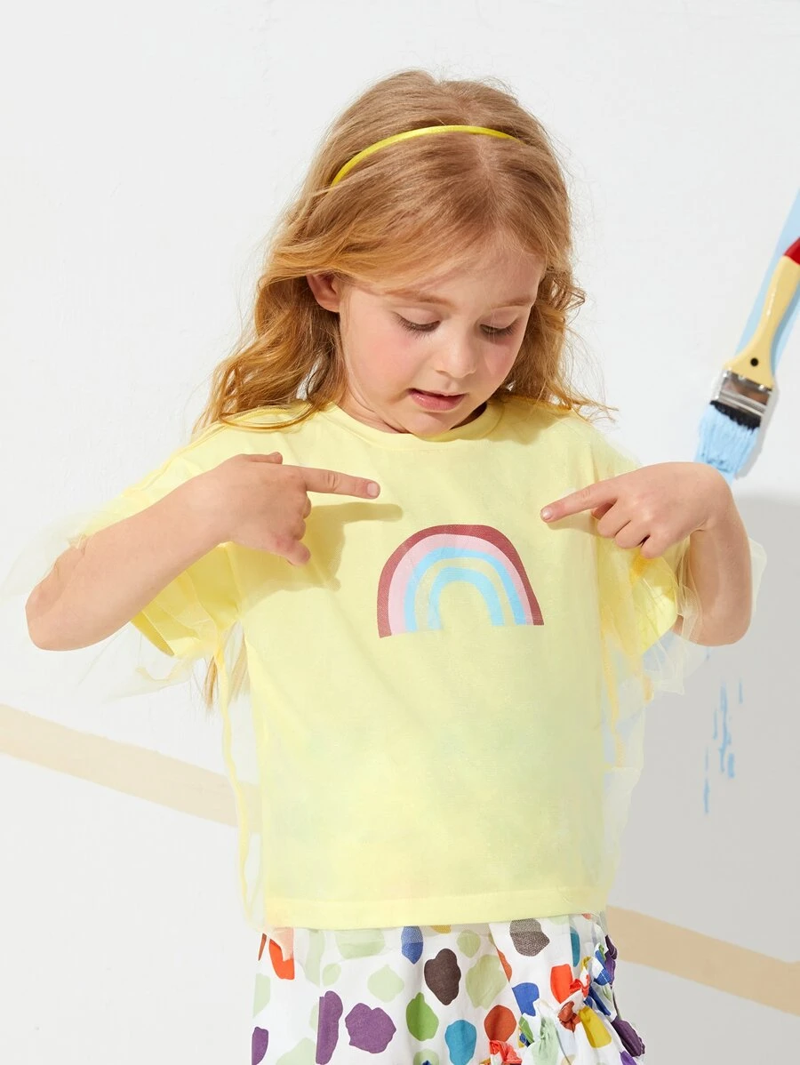 لباس علوي بجرافيك رسوم كارتون بكفة شبكي للبنات الصغار