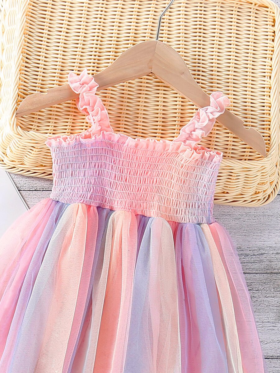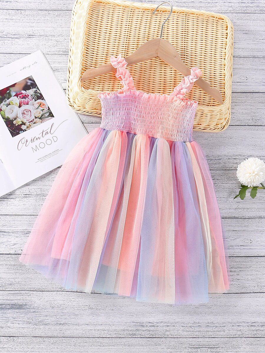فستان كامي ألوان متدرجة بغرز توتو للبنات الصغار