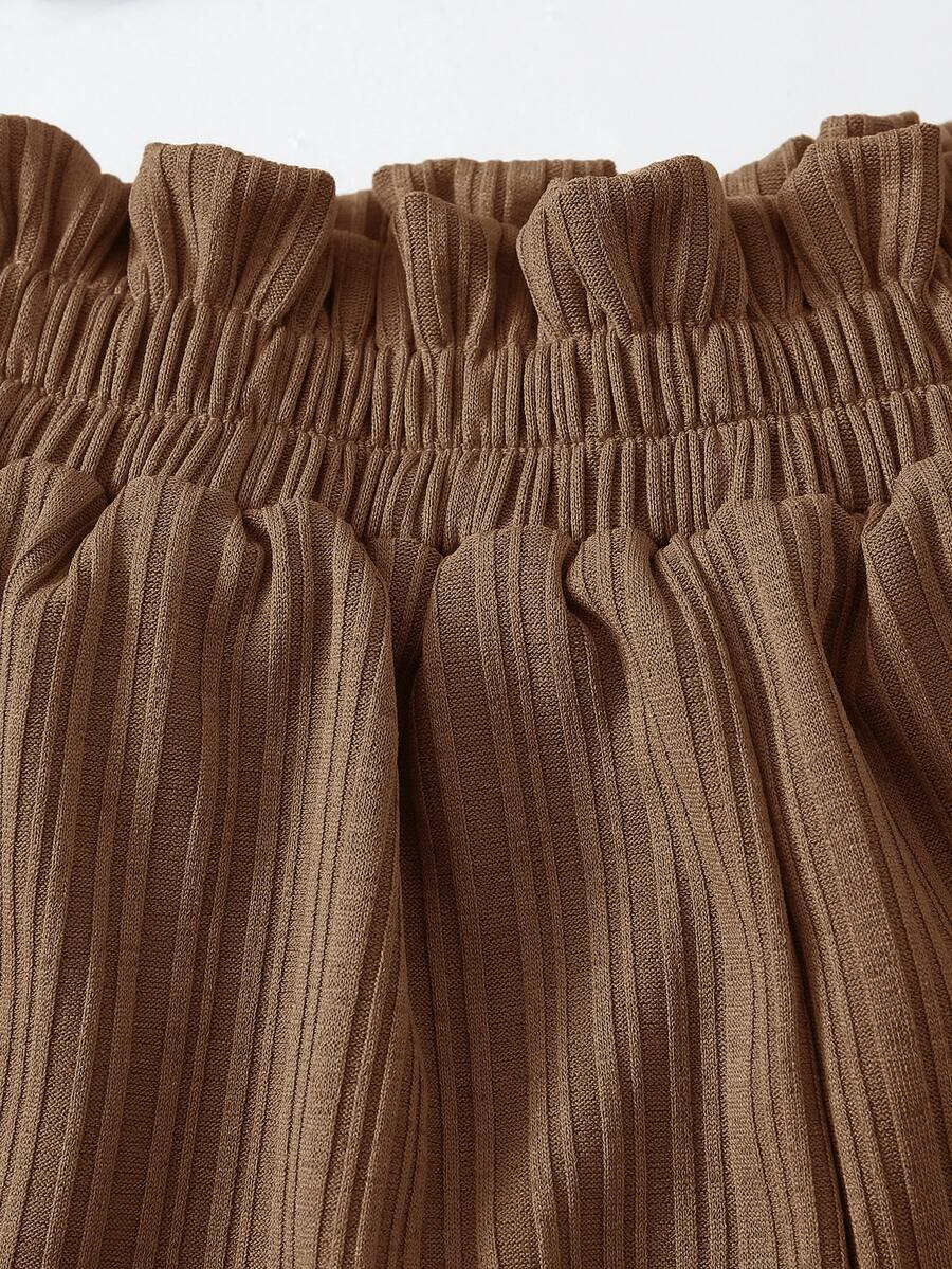 شورت بخصر جيب ورقي مع لباس علوي كروب بكتف واحد للبنات الصغار