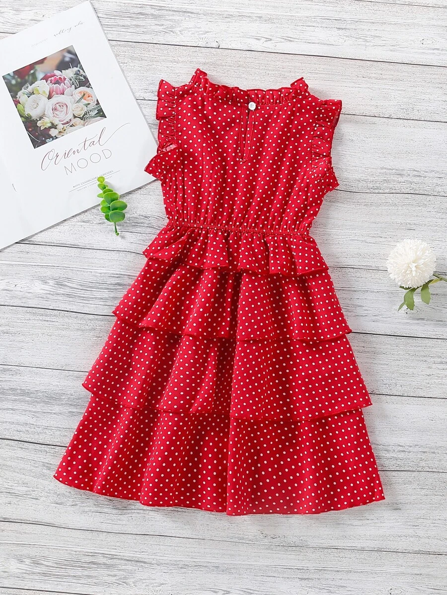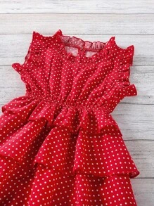 فستان طبقات بياقة مكشكشة وطباعة نقاط البولكا طفلة صغيرة