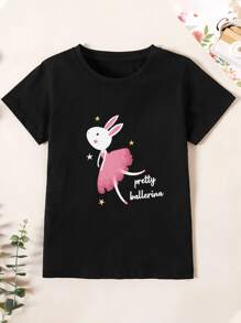 تي شيرت بجرافيك شعار وارنب للبنات الصغار