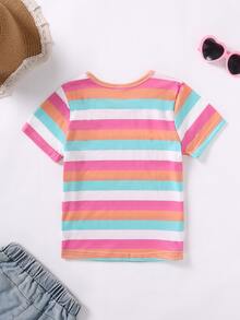 تيشيرت بخطوط قوس قزح وطباعة وحيد قرن طفلة صغيرة