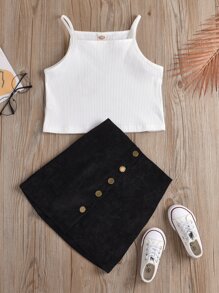 للبنات الصغار محبوك مضلع صدرية كامي و تنورة