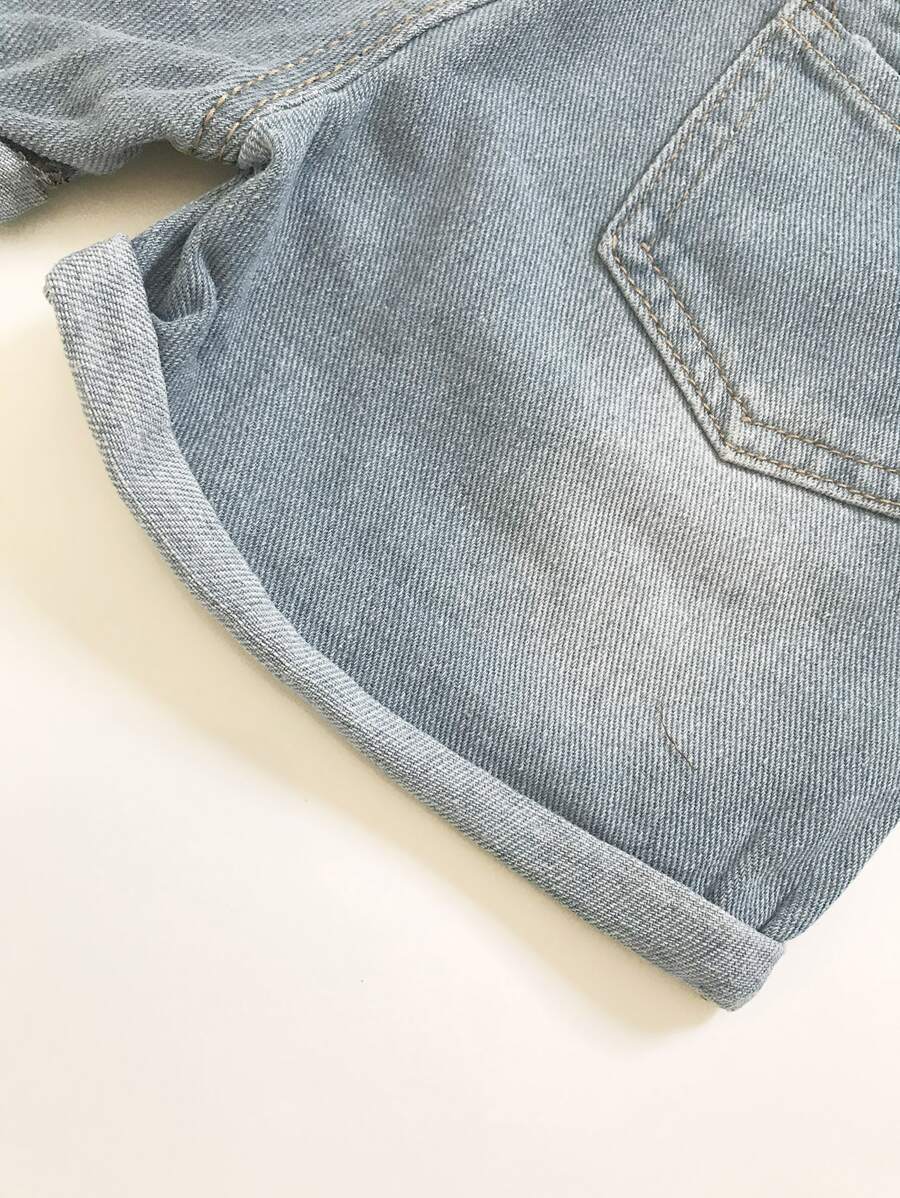 توب بحافة مكشكشة وشورت دينيم طفلة صغيرة