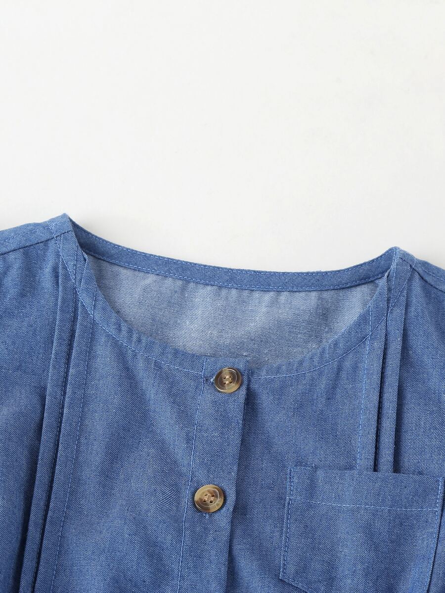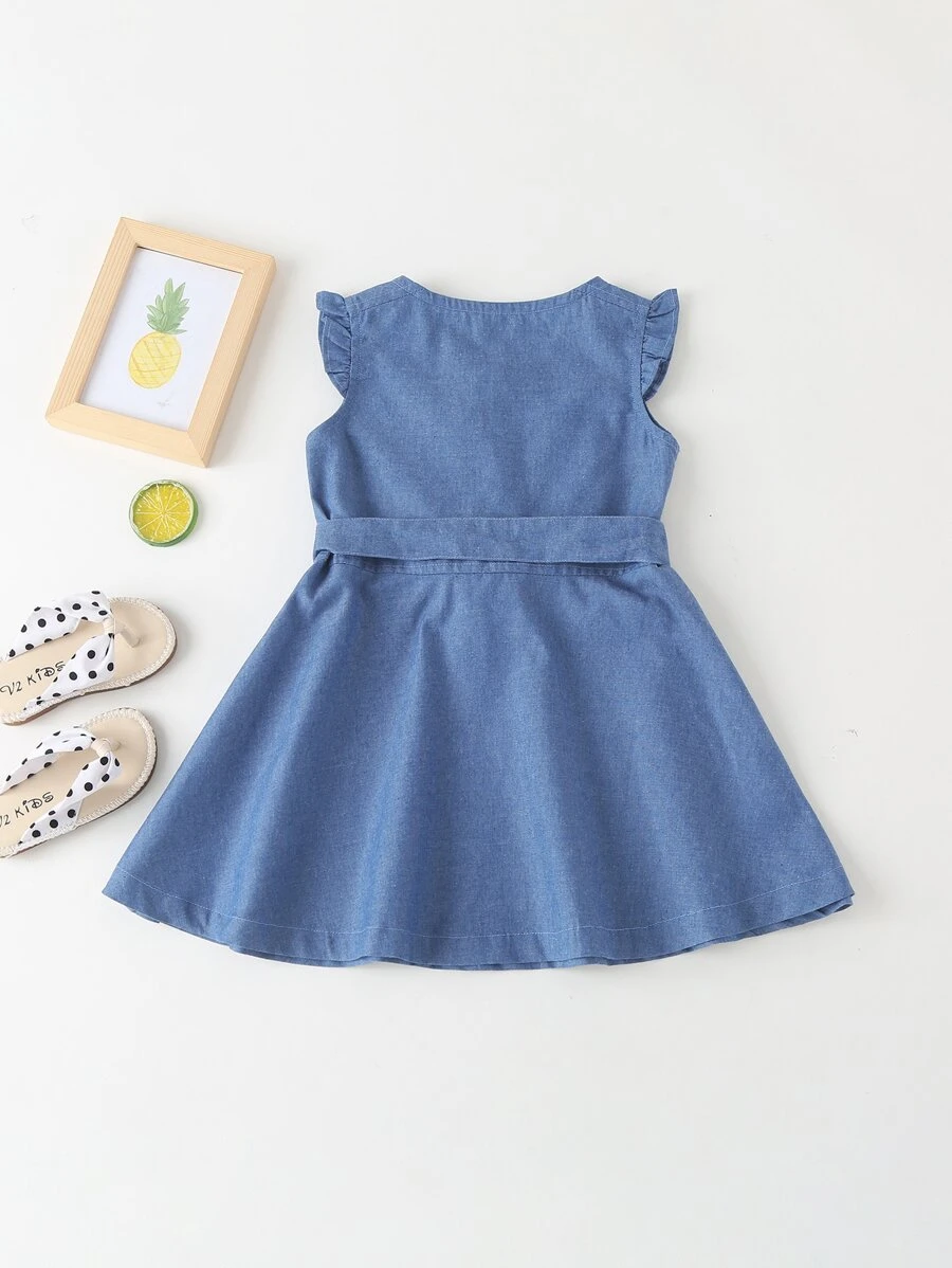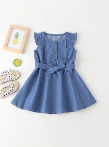 فساتين جينز للبنات الصغار الزر الصاف كاجوال