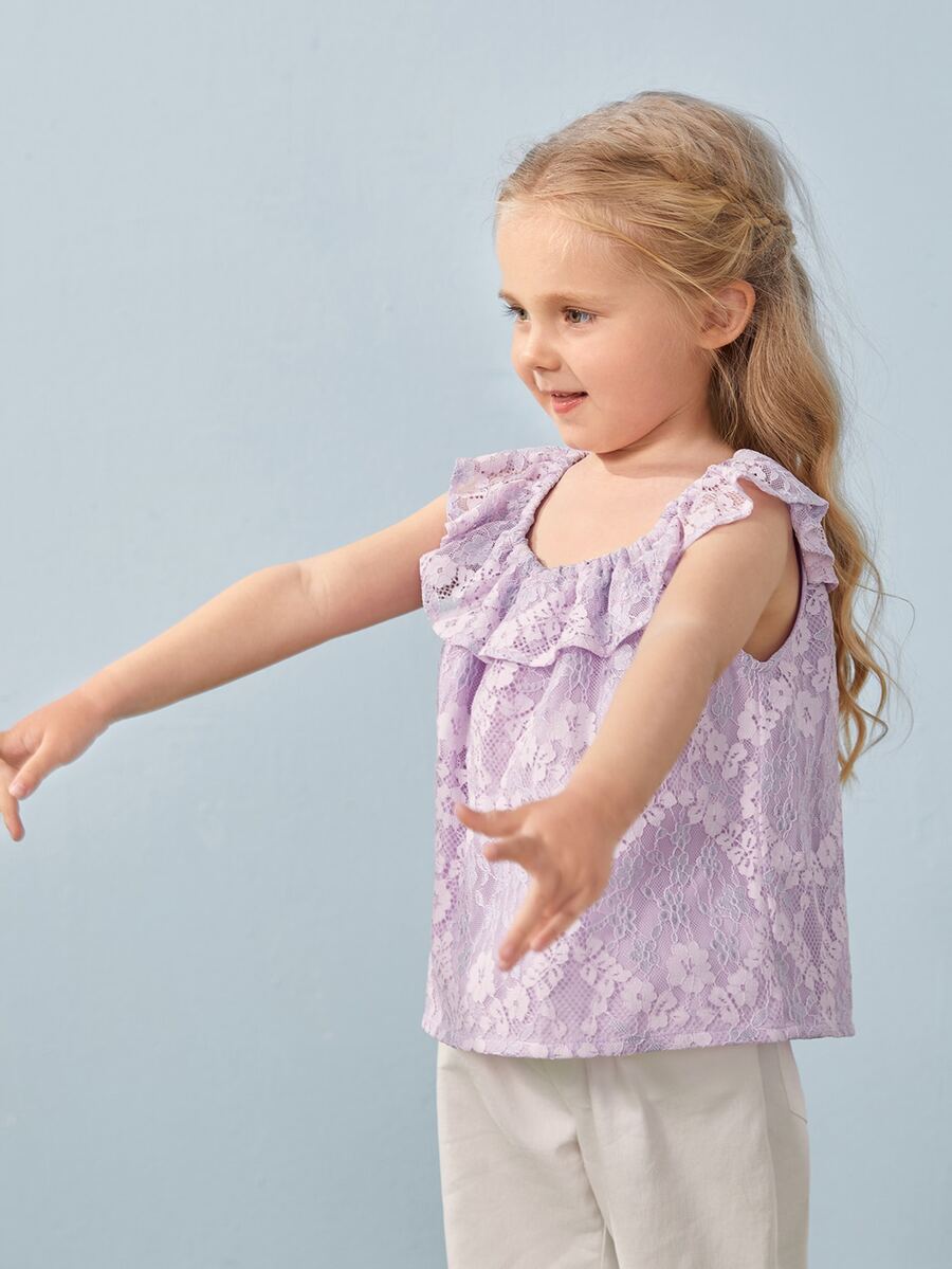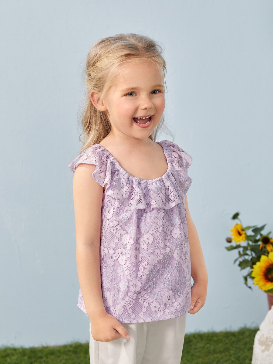 لباس علوي بدانتيل مقلم مكشكش للبنات الصغار