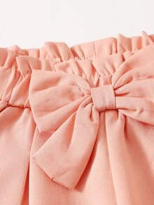سروال قصير بخصر مكشكش ورقي بقوس امامي بلون موحد للبنات الصغار
