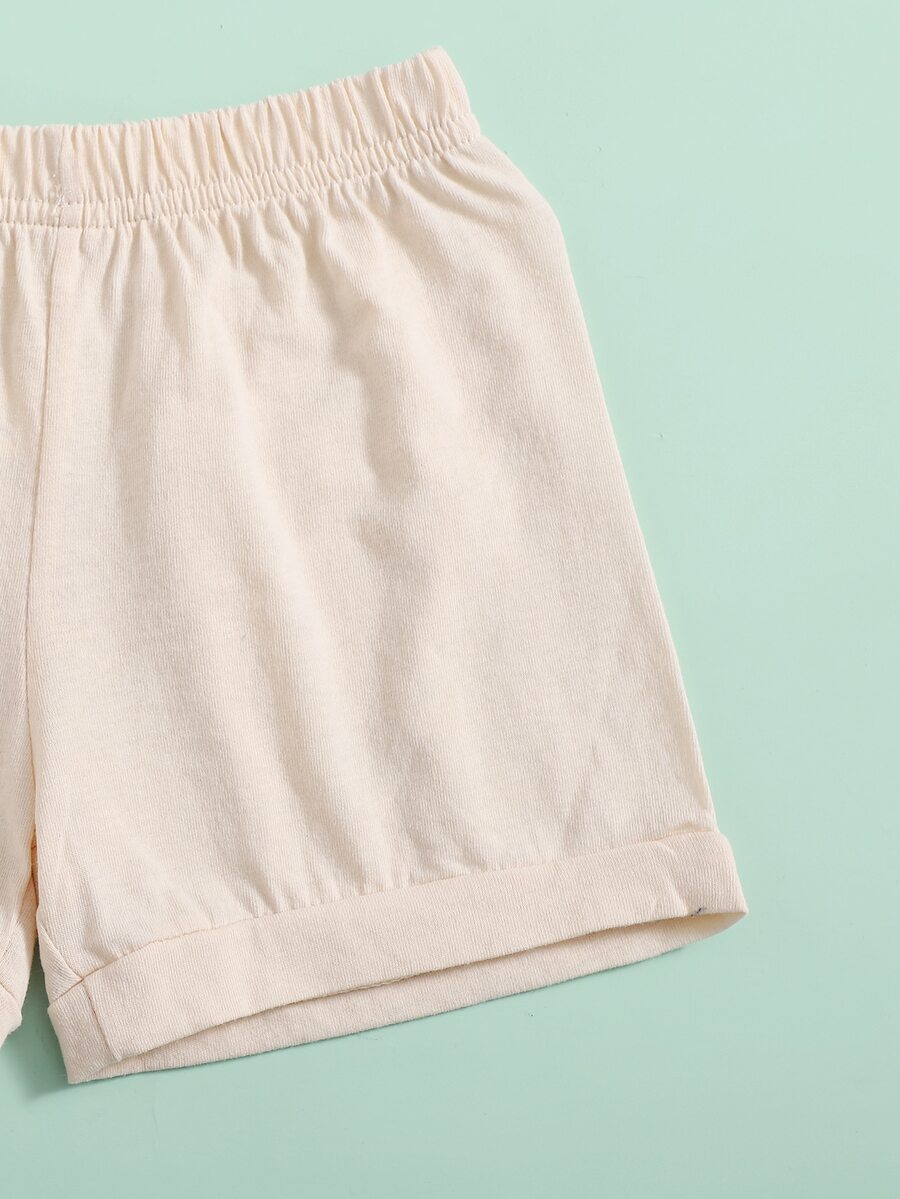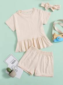 شورت مع تي شيرت بحافة مكشكش وبلون موحد مع عقال راس للبنات الصغار