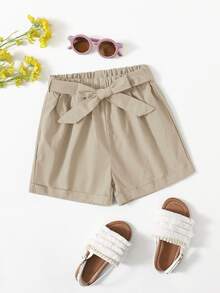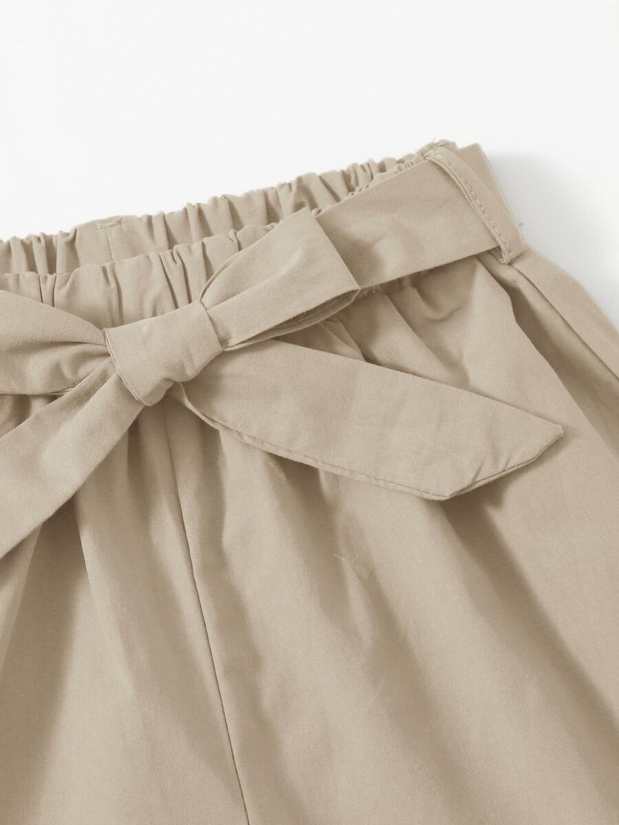شورت بربطة ذاتي وبلون موحد للبنات االصغار