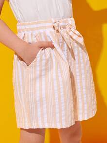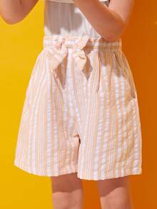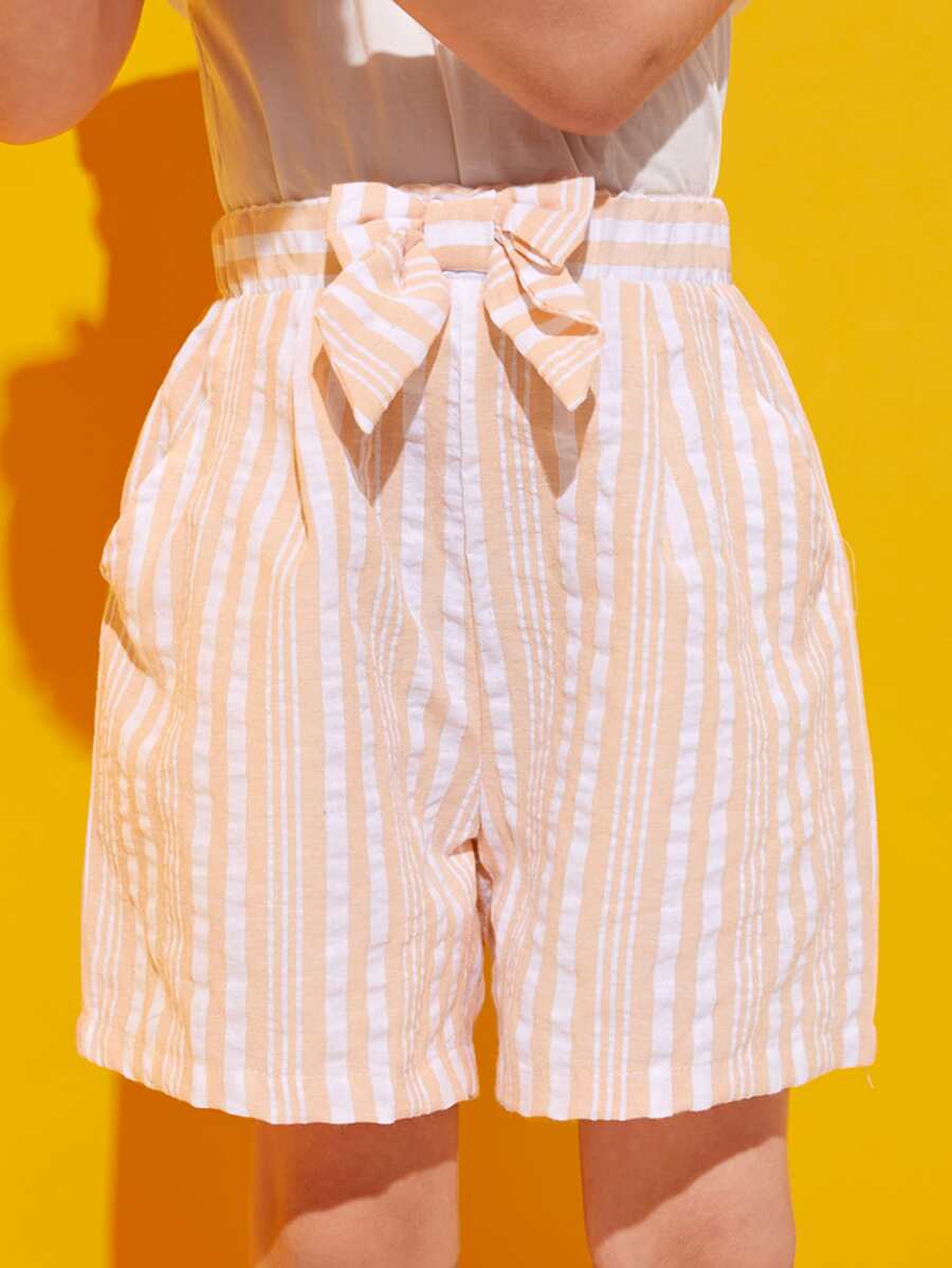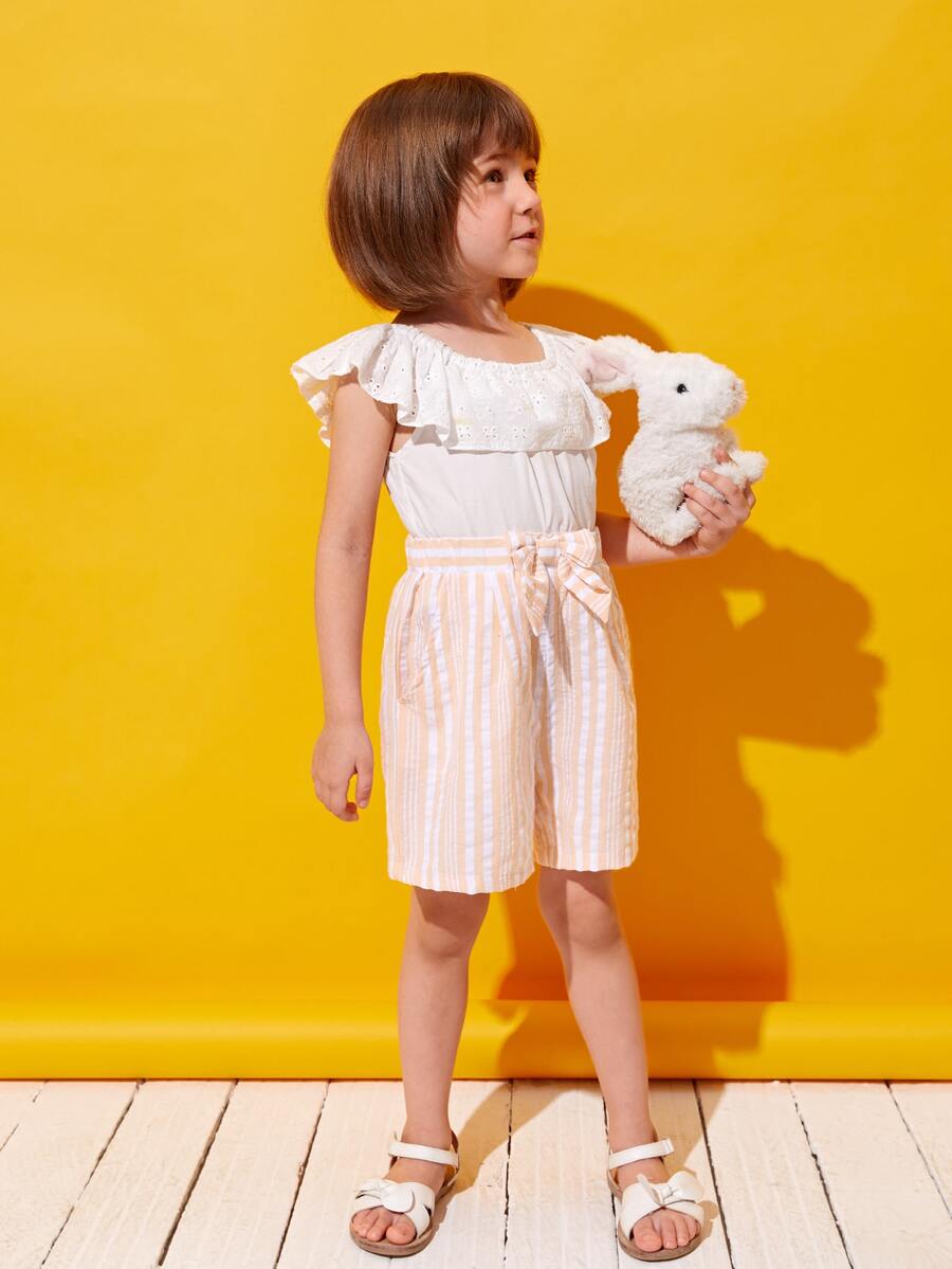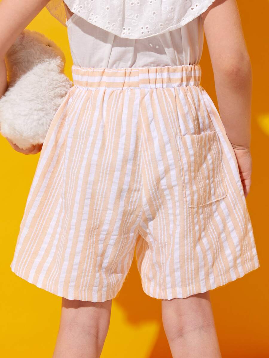 سروال قصير بقوس امامي مخطط للبنات الصغار