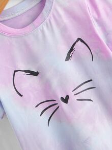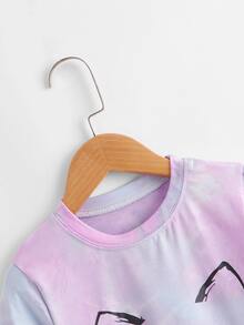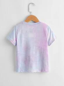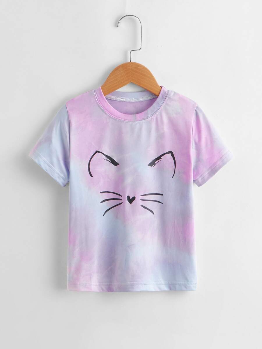 تي شيرت بجرافيك رسوم كارتون وبصبغ متعادل للبنات الصغار