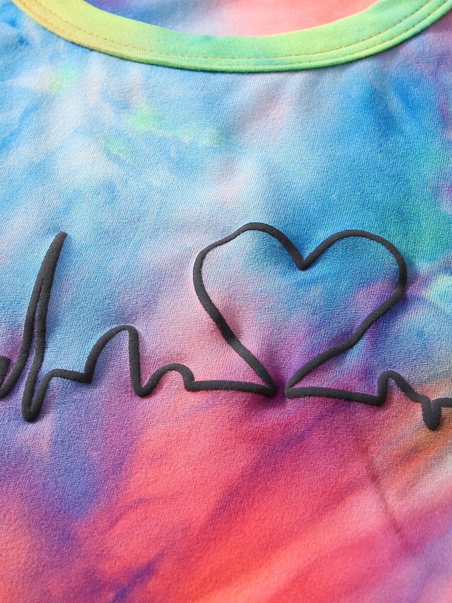تنورة مكشكش مع تي شيرت بقلب وبصبغ متعادل للبنات الصغار