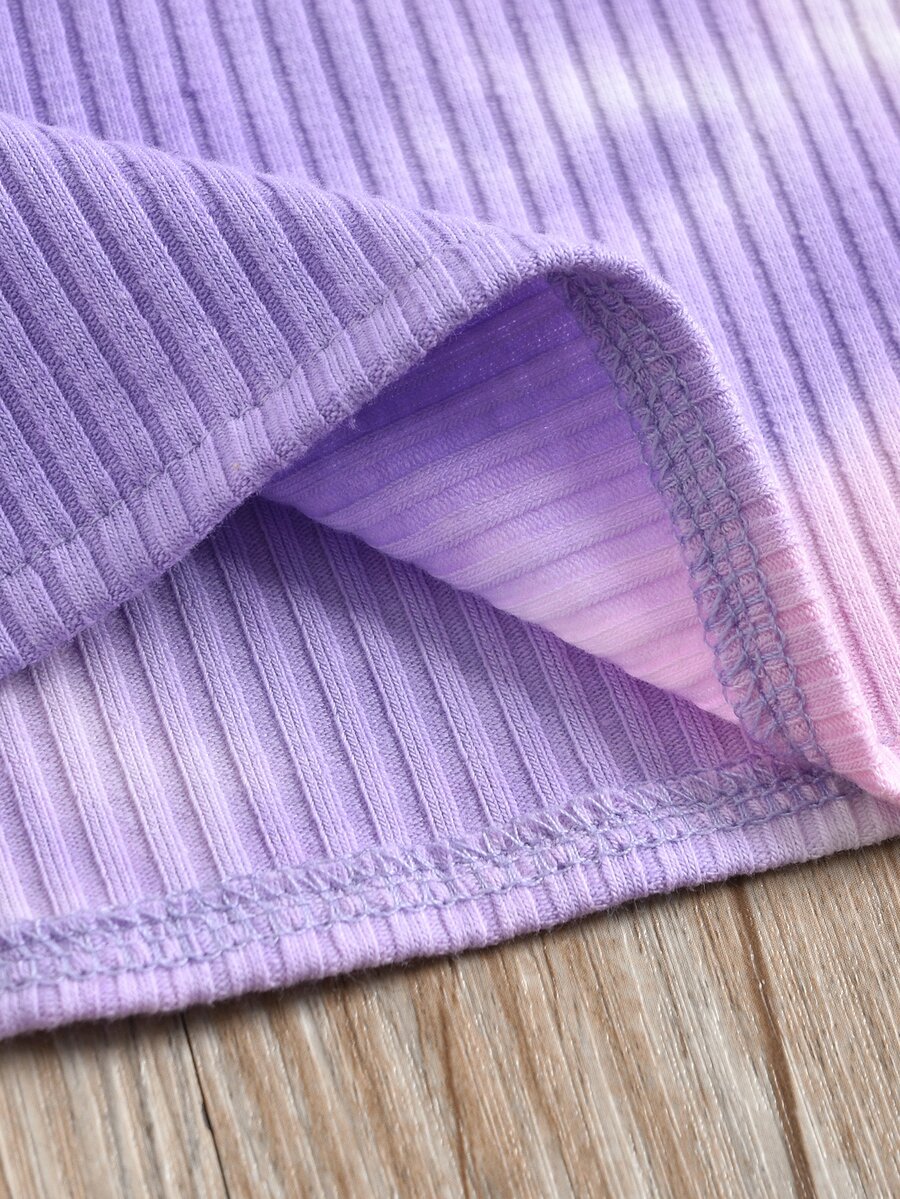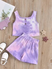 شورت بخصر جيب ورقي مع لباس علوي تانك بصبغ متعادل للبنات الصغار
