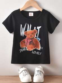 تي شيرت بجرافيك عبارة ودب لعبه للبنات الصغار