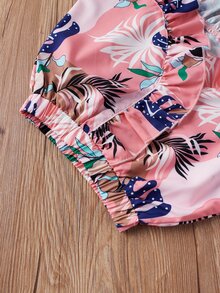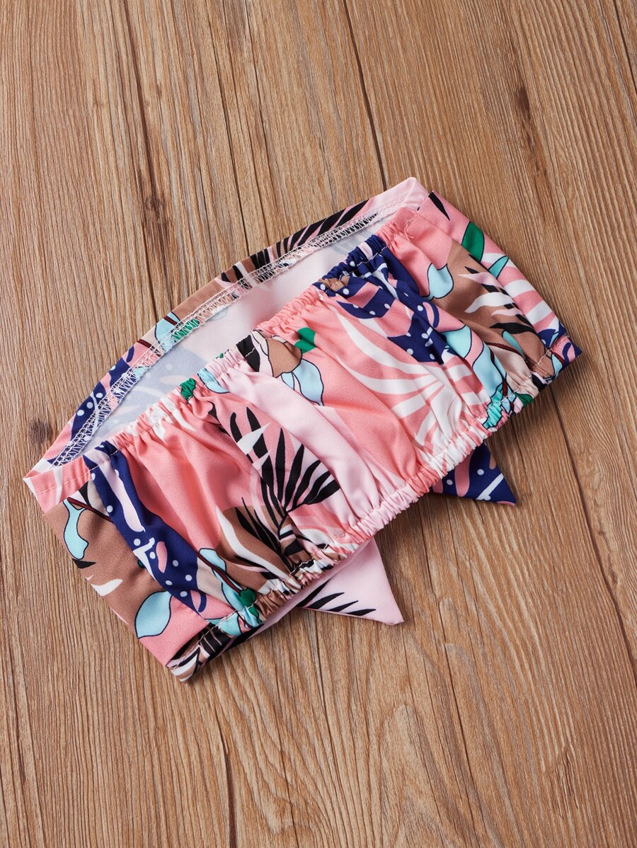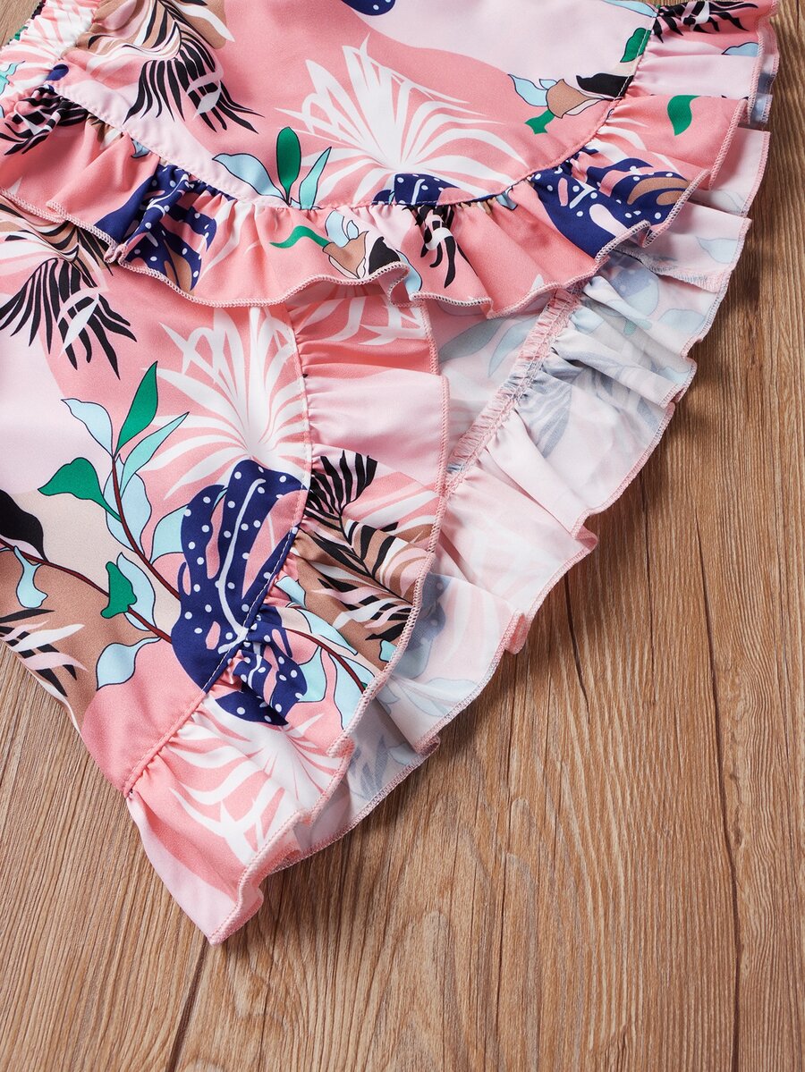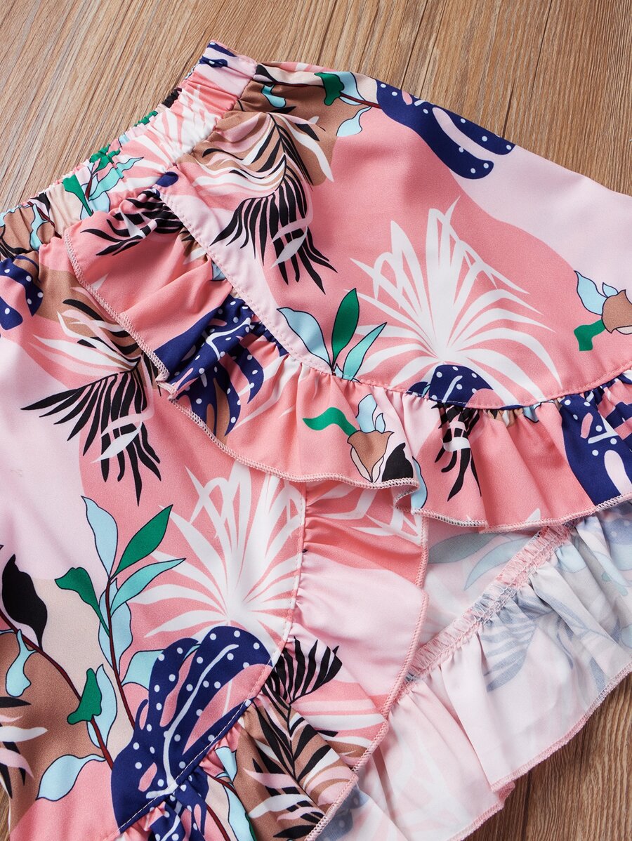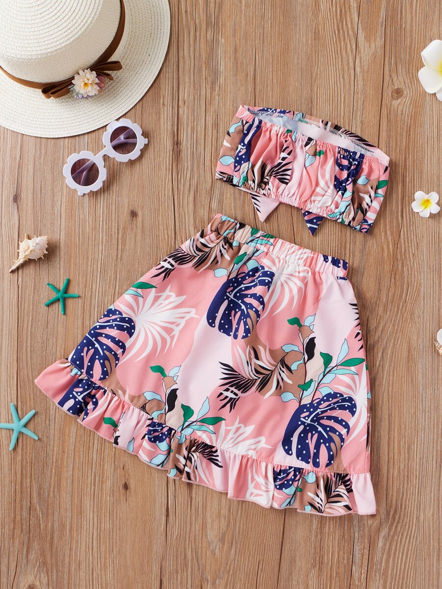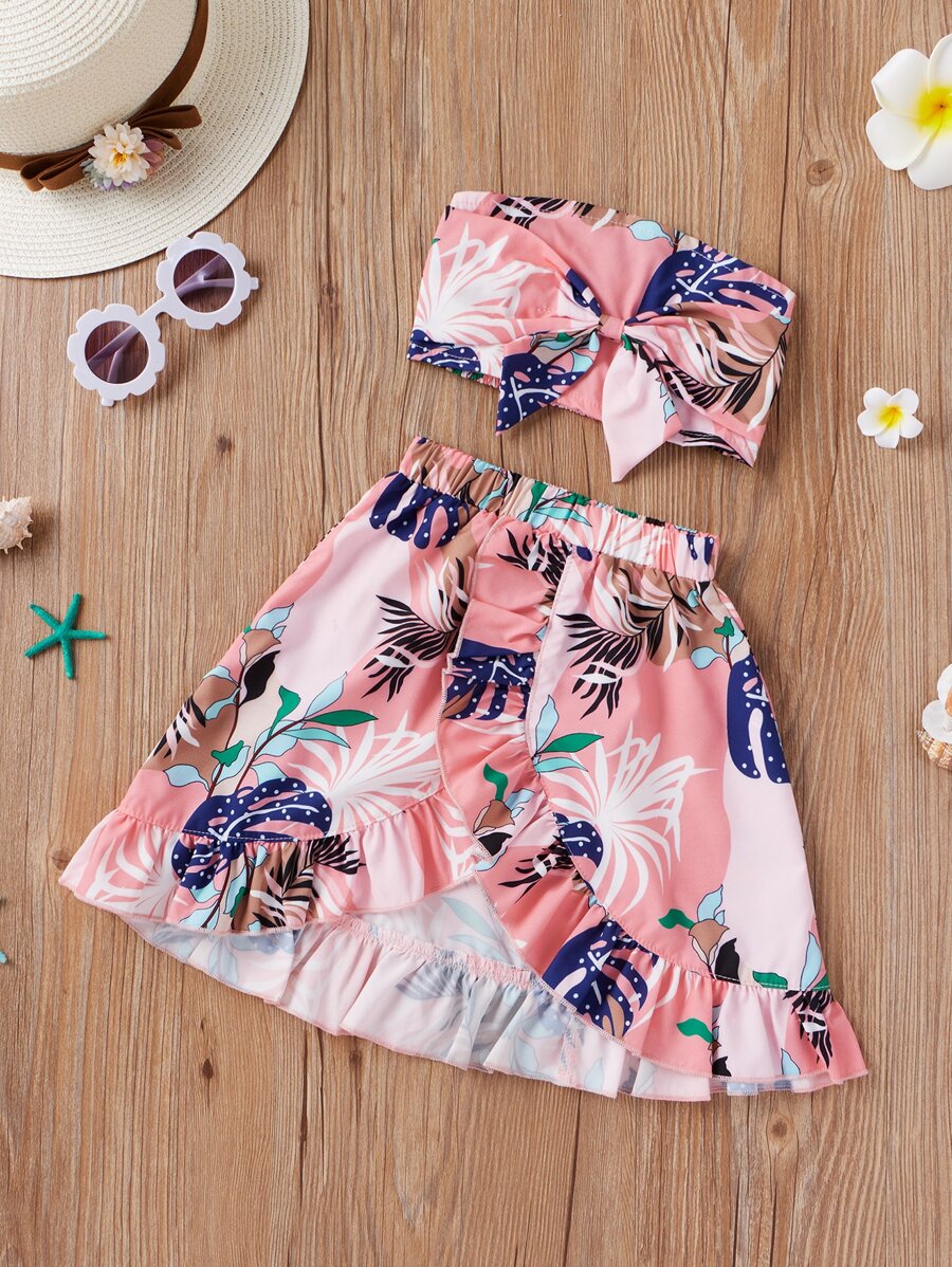 تنورة مع لباس علوي بدون اكتاف بربطة قوس وبطباعة استوائي للبنات الصغار