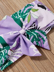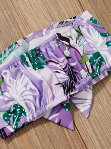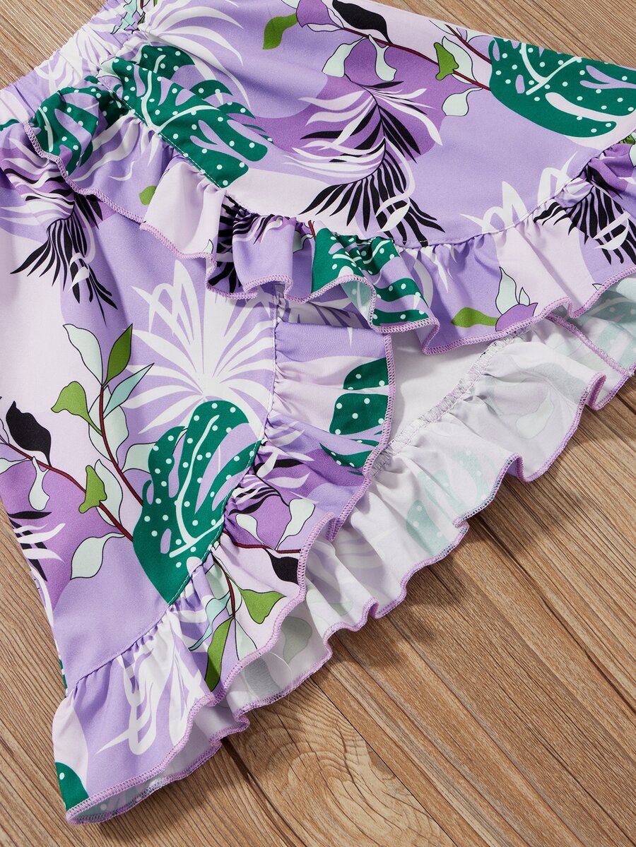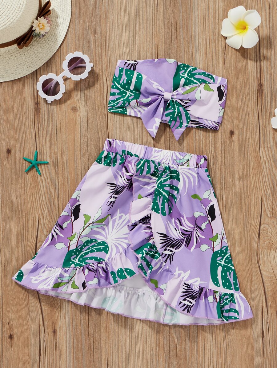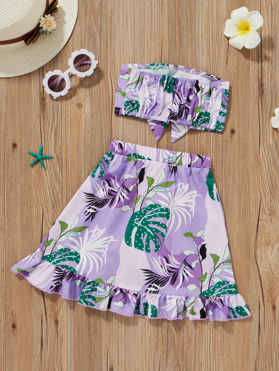 تنورة مع لباس علوي بدون اكتاف بربطة قوس وبطباعة استوائي للبنات الصغار