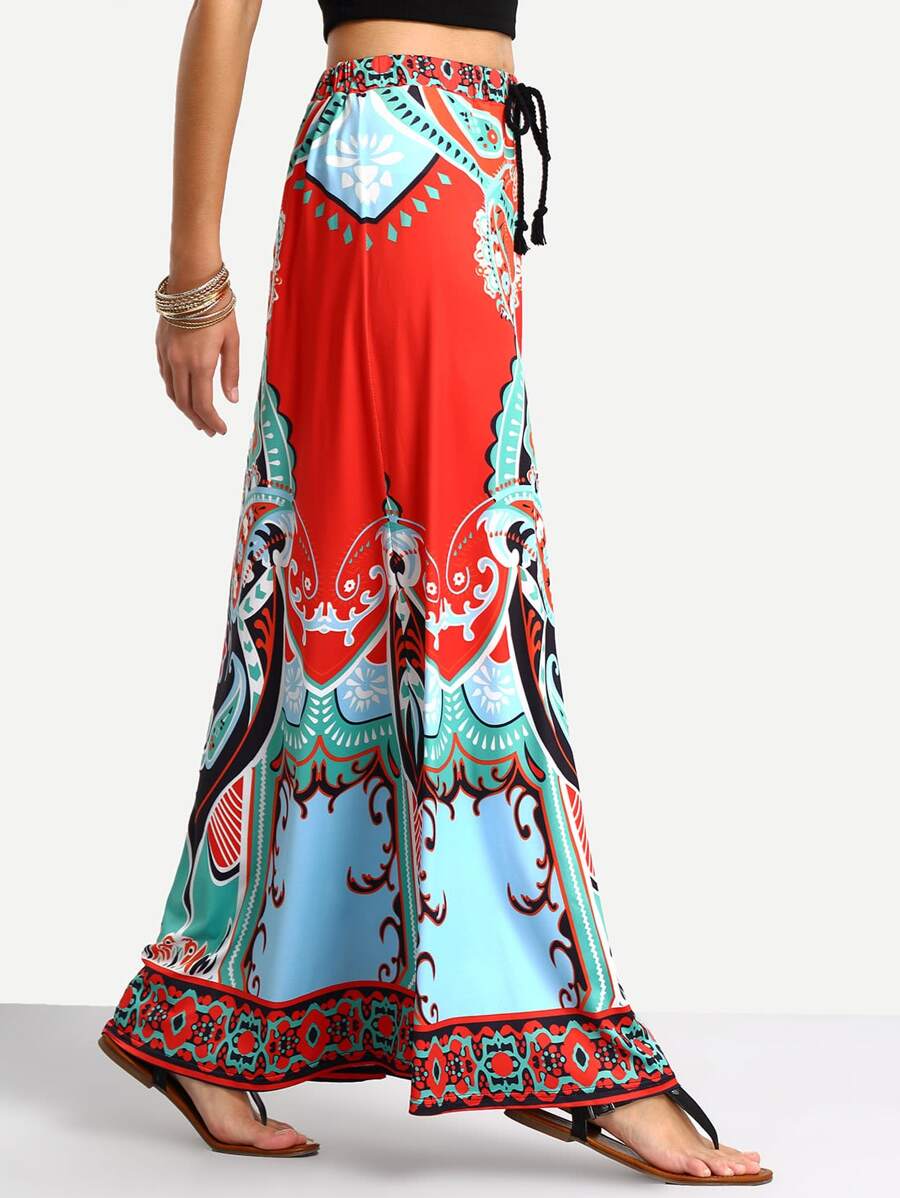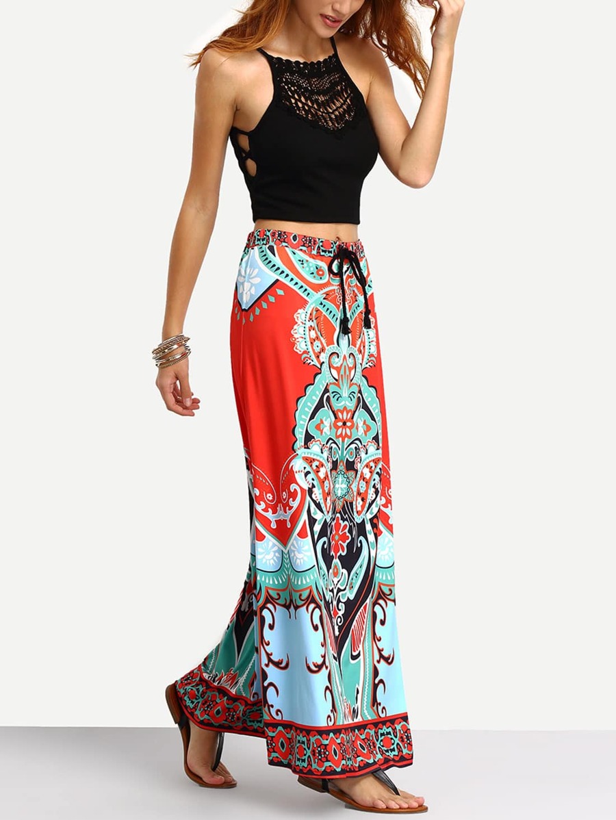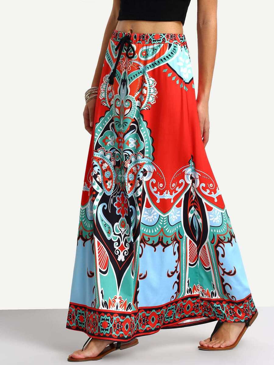تنورة ماكسي حمراء بطباعة قبلية